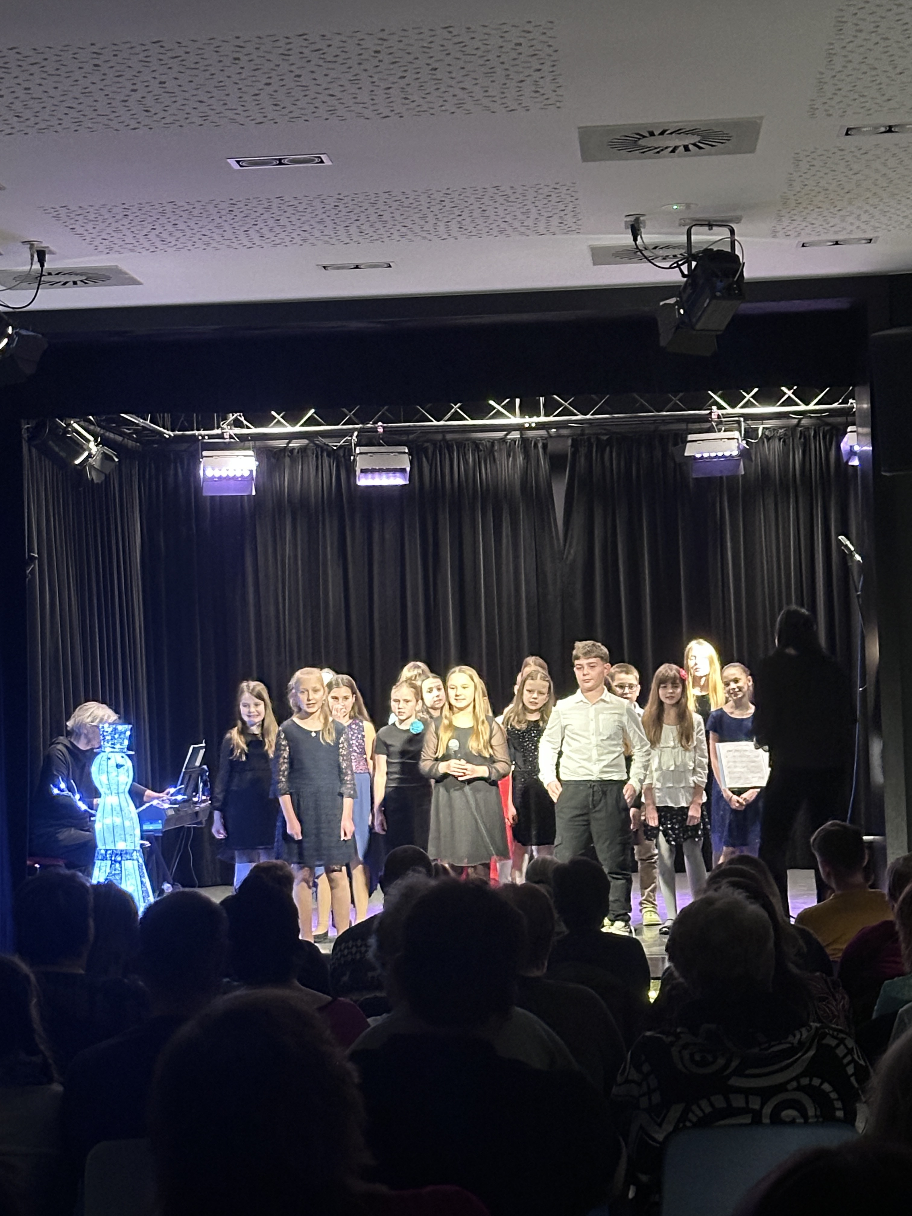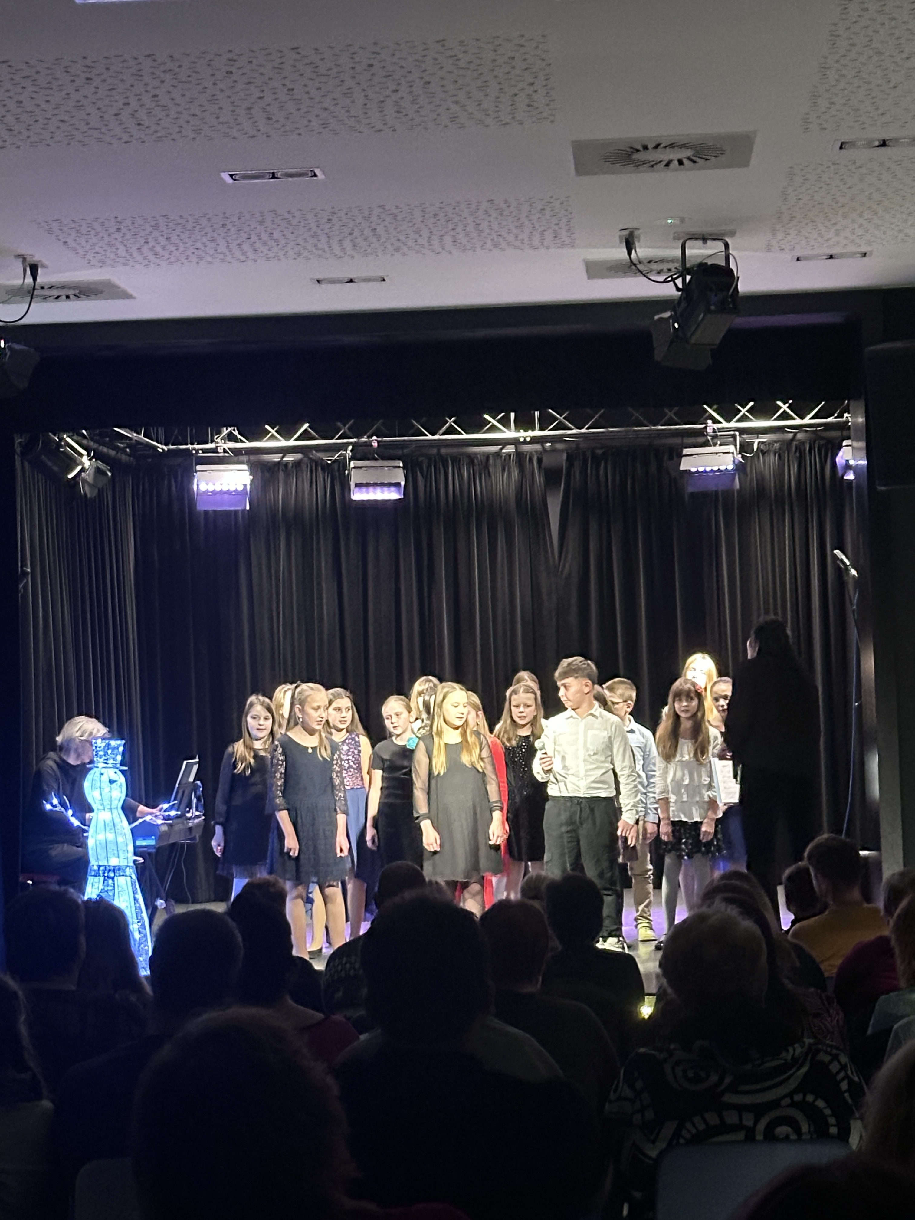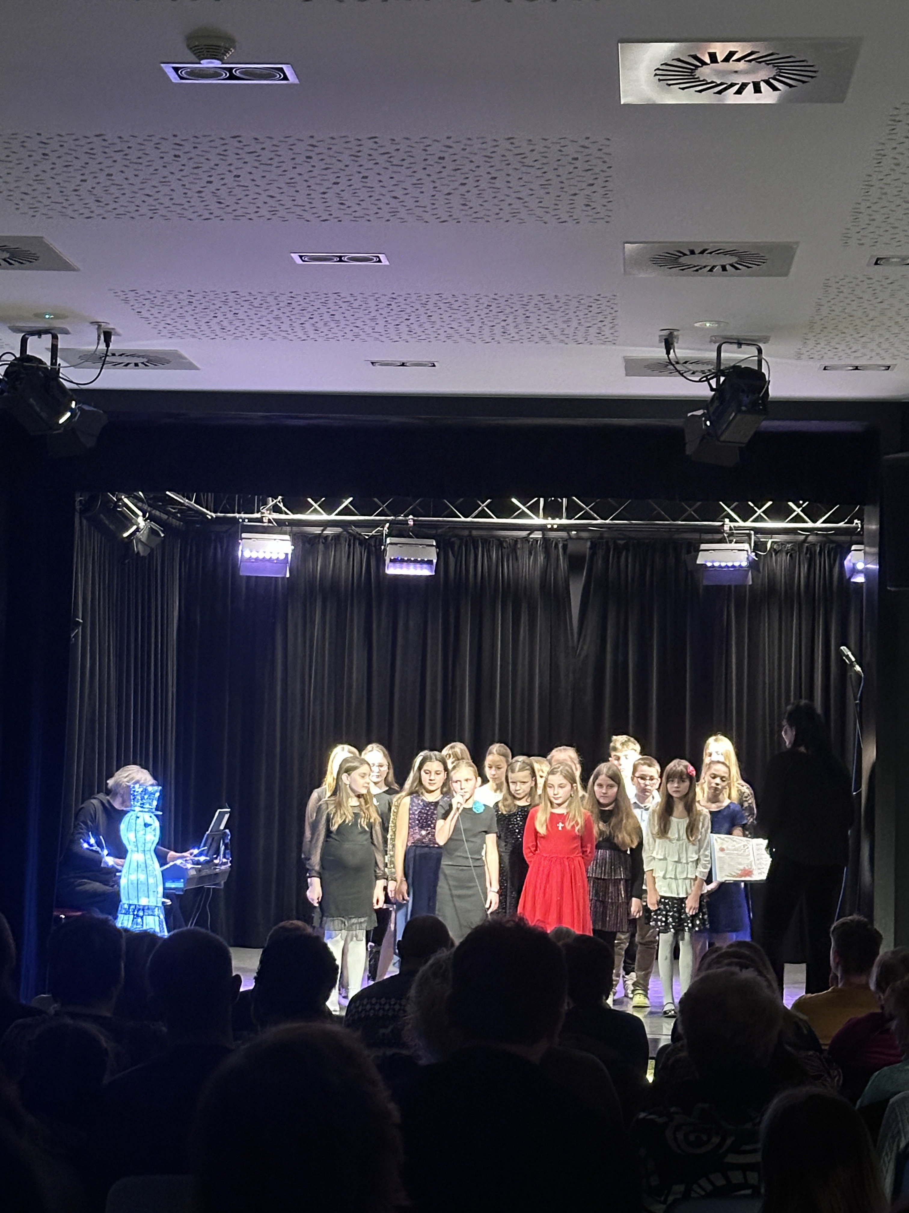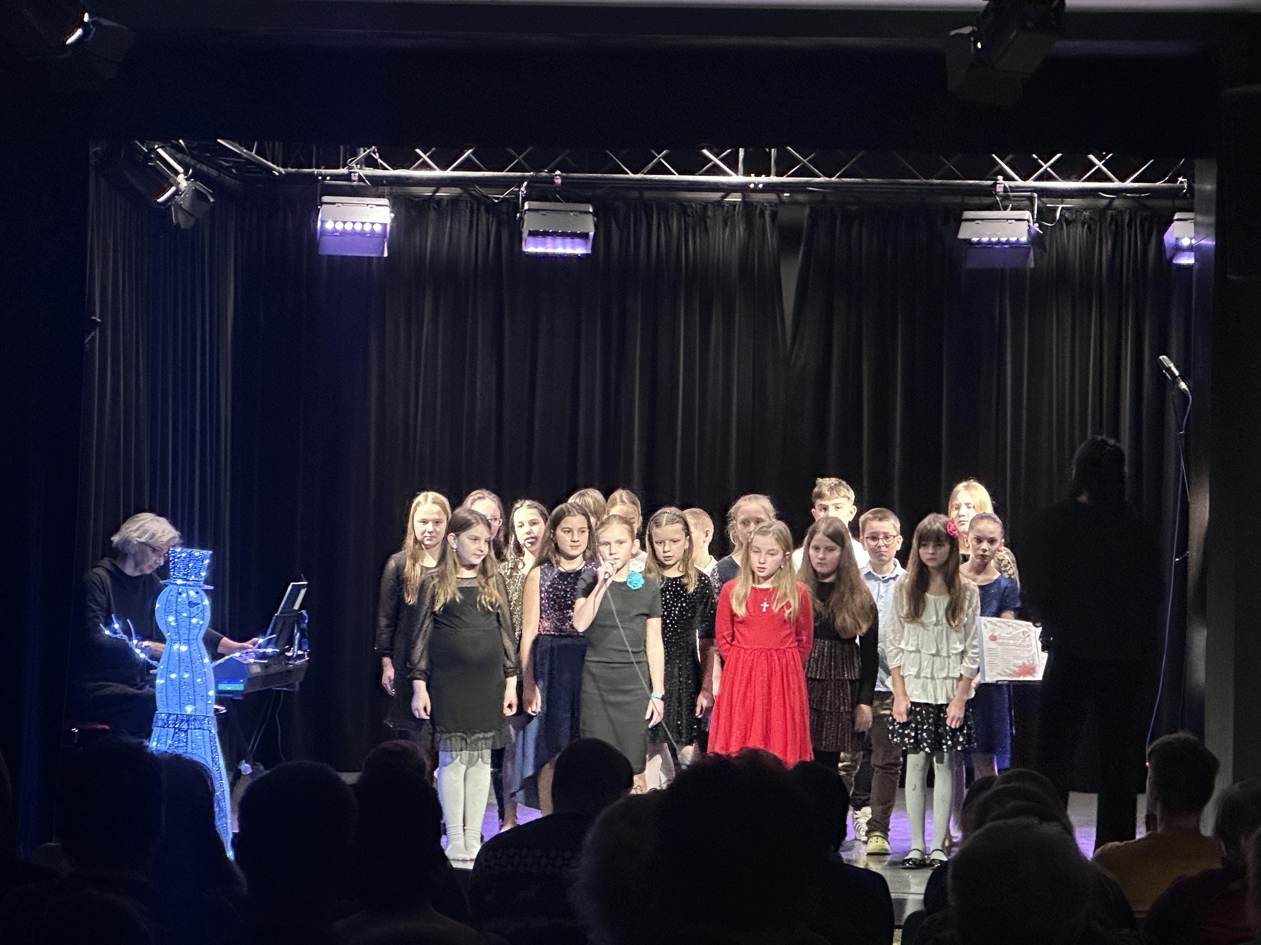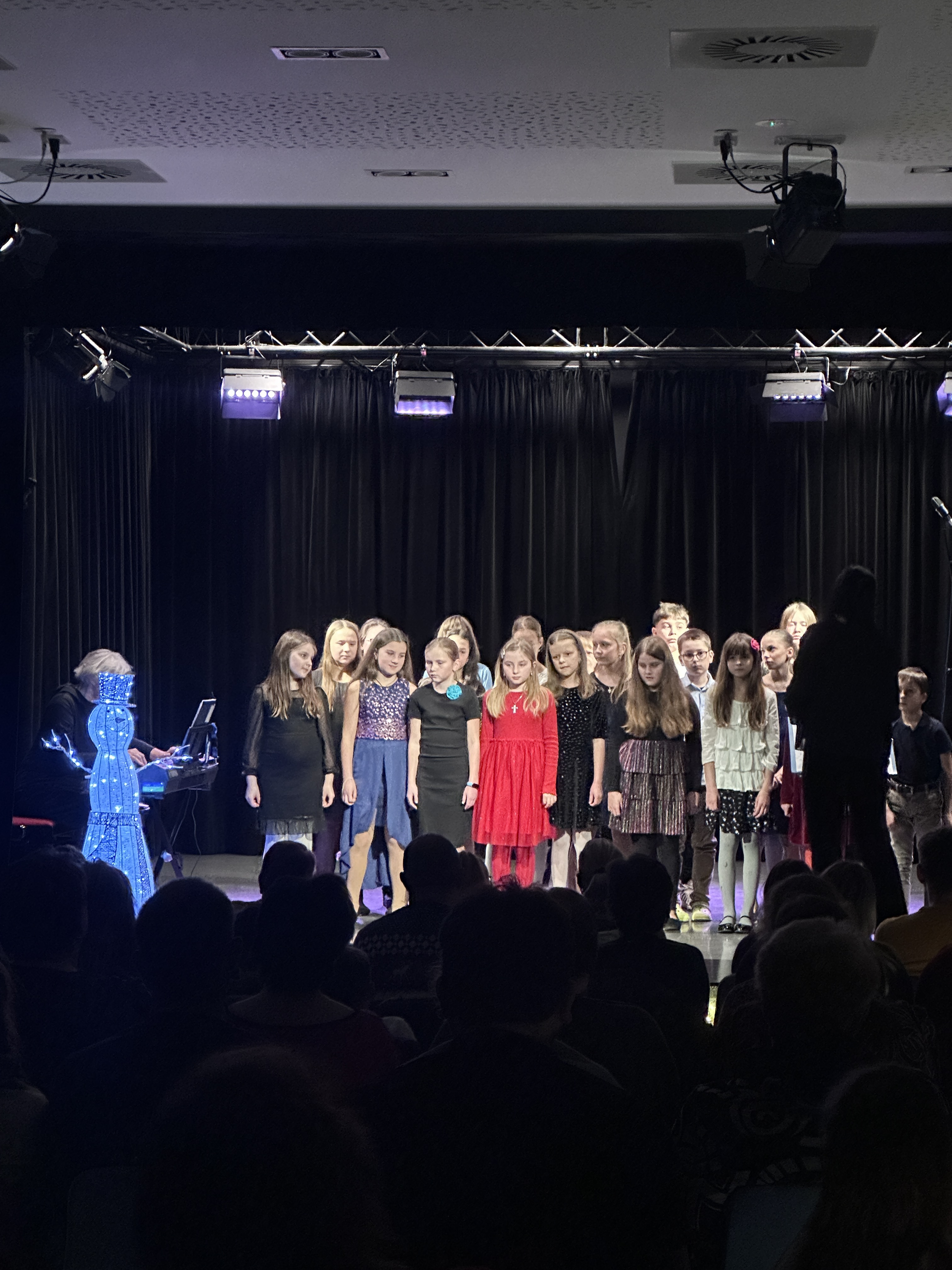 O klavírní doprovod se postarala, ostatně jako vždy naprosto perfektně, paní učitelka Miluše Havlíková. Velké poděkování patří všem dětem za jejich nasazení, učitelkám za trpělivou přípravu a také publiku, které zcela zaplnilo sál a vytvořilo nezapomenutelnou atmosféru.