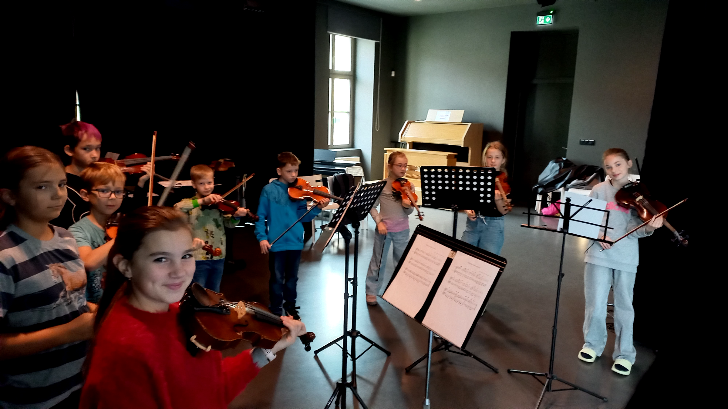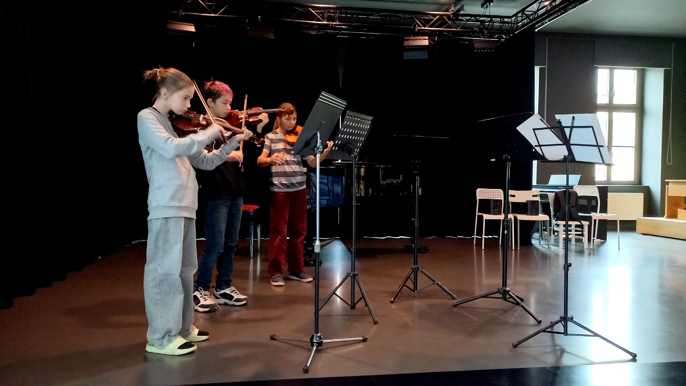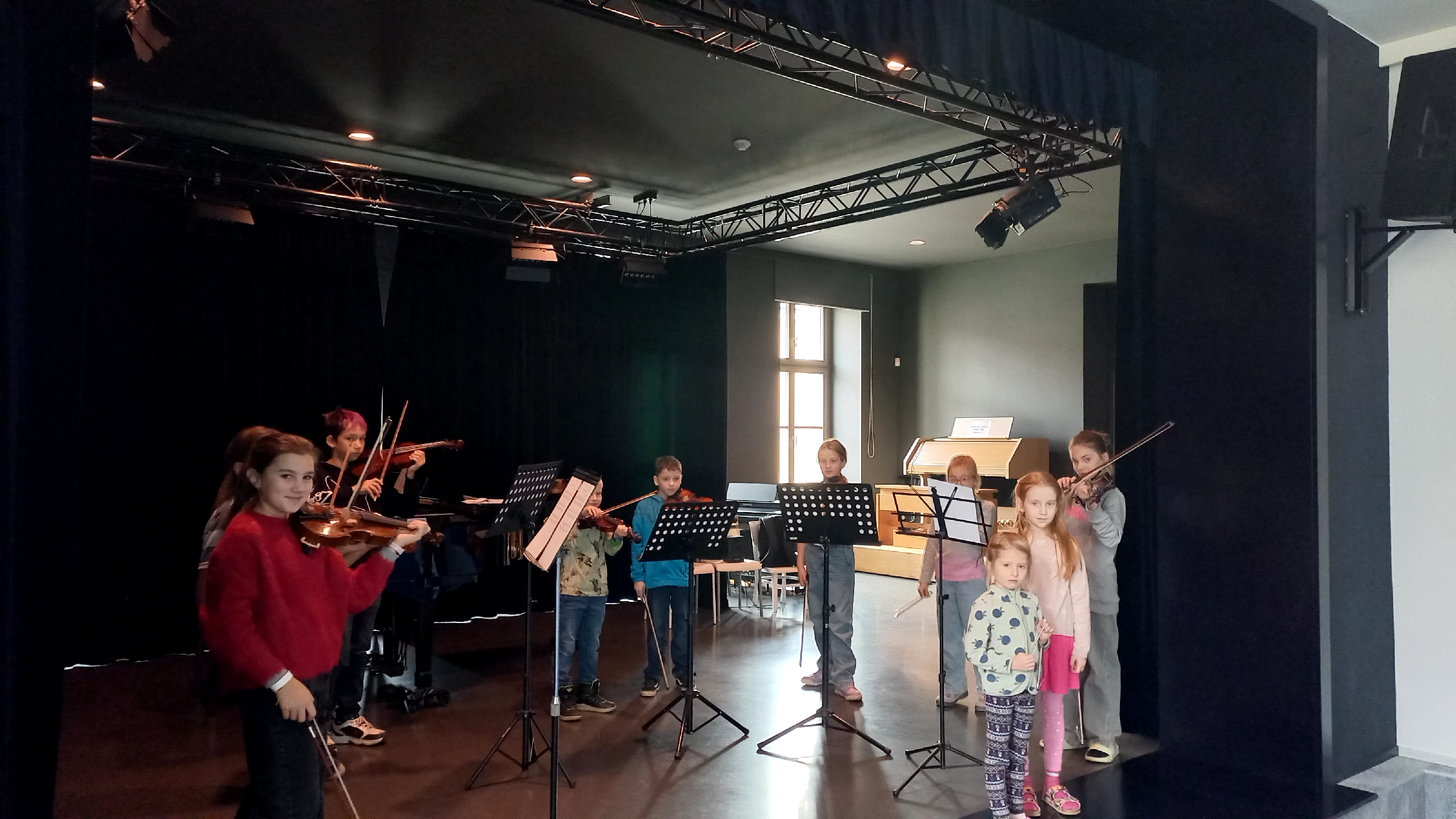 V sobotu 22. 11. 2025 proběhlo ve škole soustředění houslové třídy naší nové paní učitelky Marie Kašpárkové. Děti nejdříve zapracovaly zejména na komorní hře. Všichni žáci společně pak nacvičili koledu Nesem vám noviny, kterou paní učitelka zaranžovala na míru aktuálního obsazení. Na závěr si vyzkoušeli koncert „nanečisto“, včetně následného sebehodnocení a hodnocení ostatních. Zapojila se celá třída včetně úplně nejmenších houslistek. Věříme, že se jedná o zárodek nové generace smyčcového souboru naší školy.