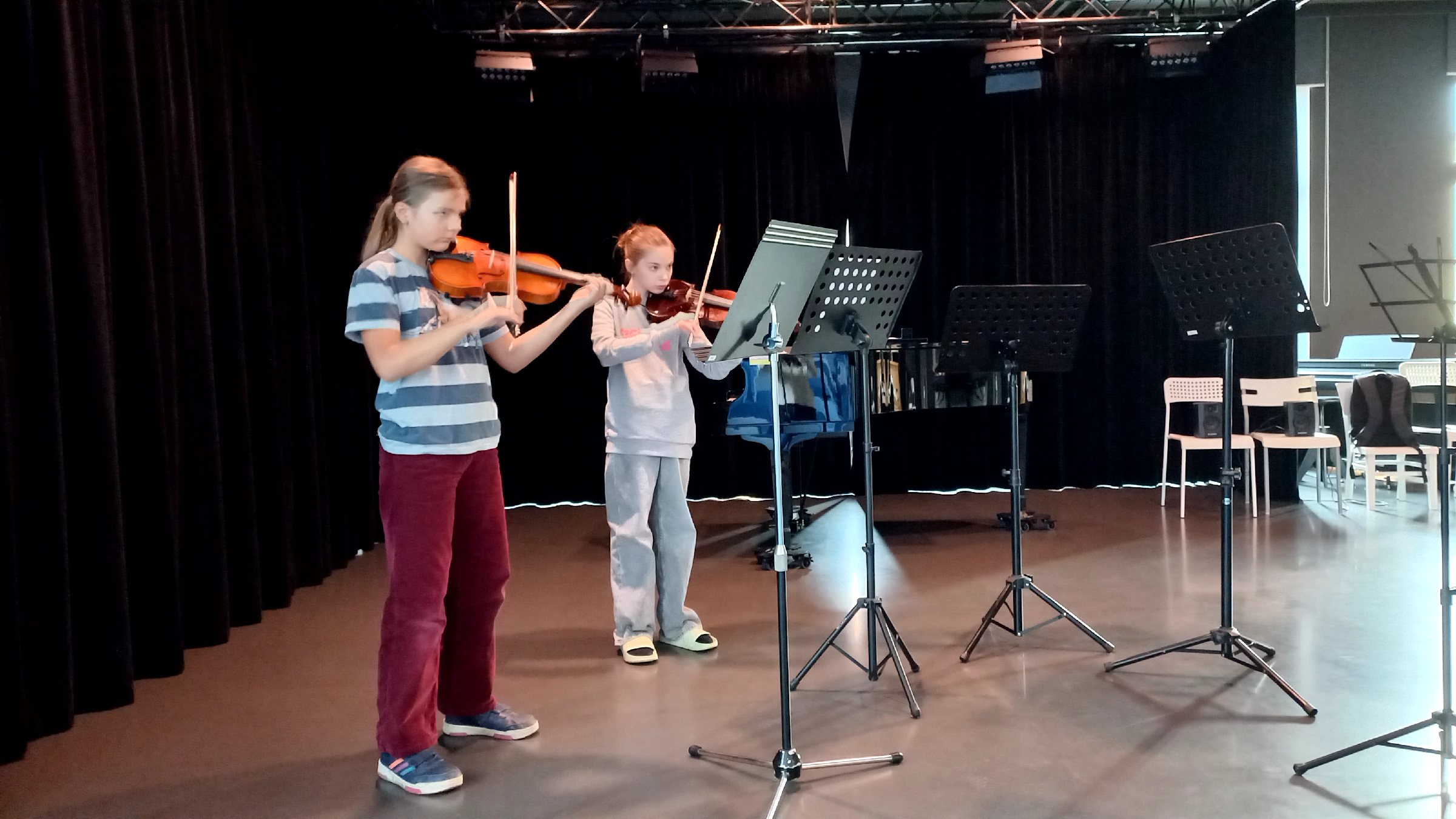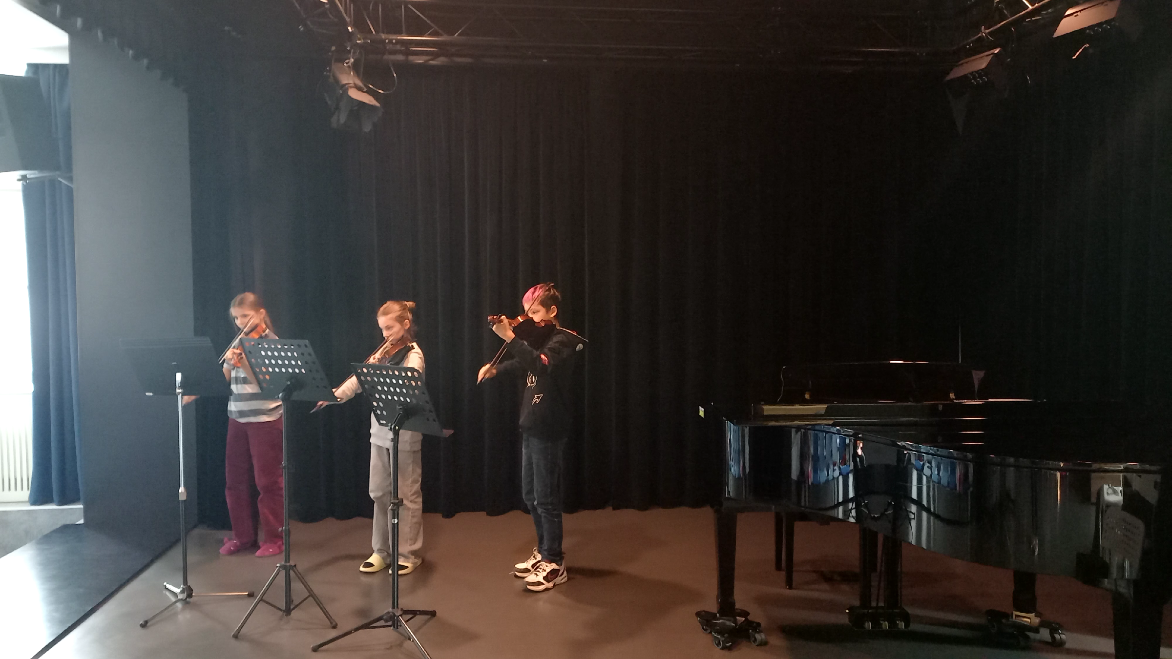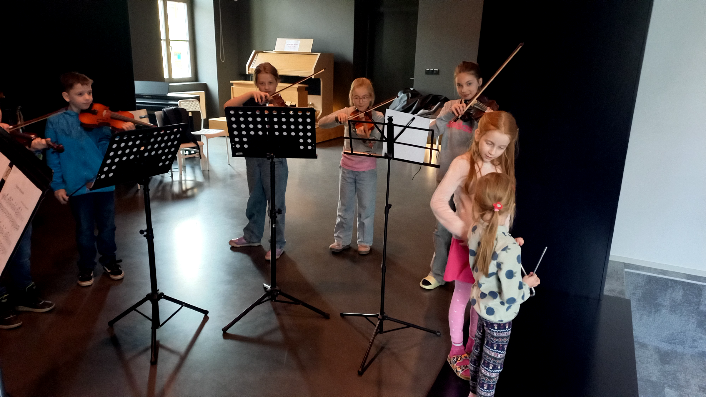 V sobotu 22. 11. 2025 proběhlo ve škole soustředění houslové třídy naší nové paní učitelky Marie Kašpárkové. Děti nejdříve zapracovaly zejména na komorní hře. Všichni žáci společně pak nacvičili koledu Nesem vám noviny, kterou paní učitelka zaranžovala na míru aktuálního obsazení. Na závěr si vyzkoušeli koncert „nanečisto“, včetně následného sebehodnocení a hodnocení ostatních. Zapojila se celá třída včetně úplně nejmenších houslistek. Věříme, že se jedná o zárodek nové generace smyčcového souboru naší školy.