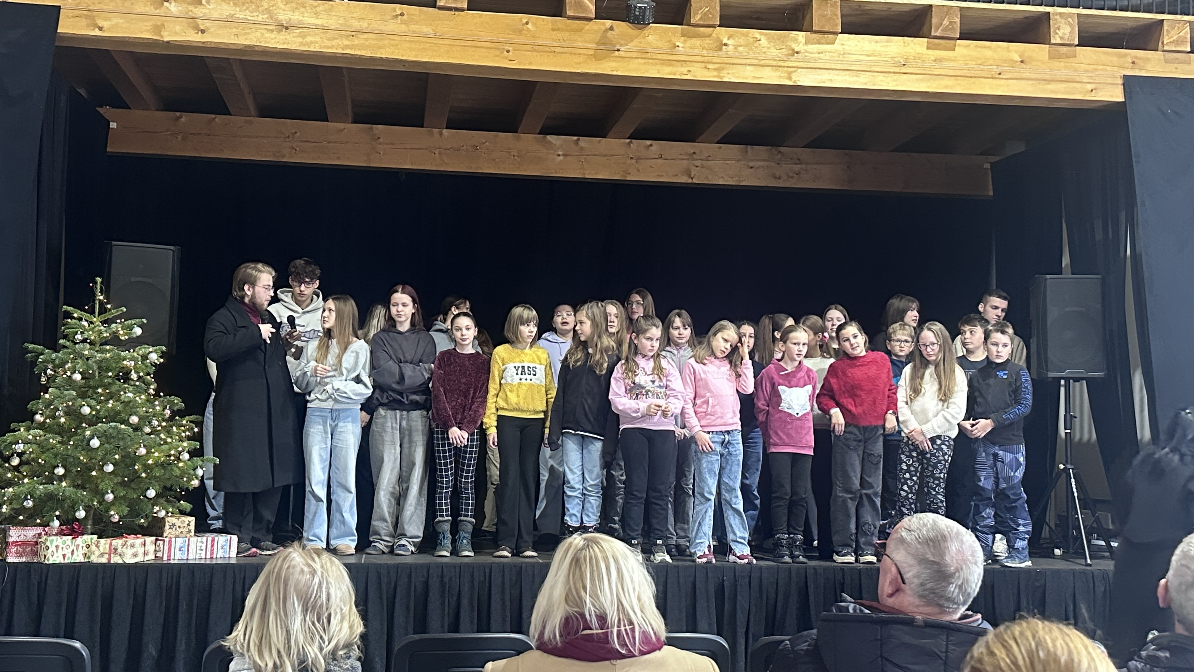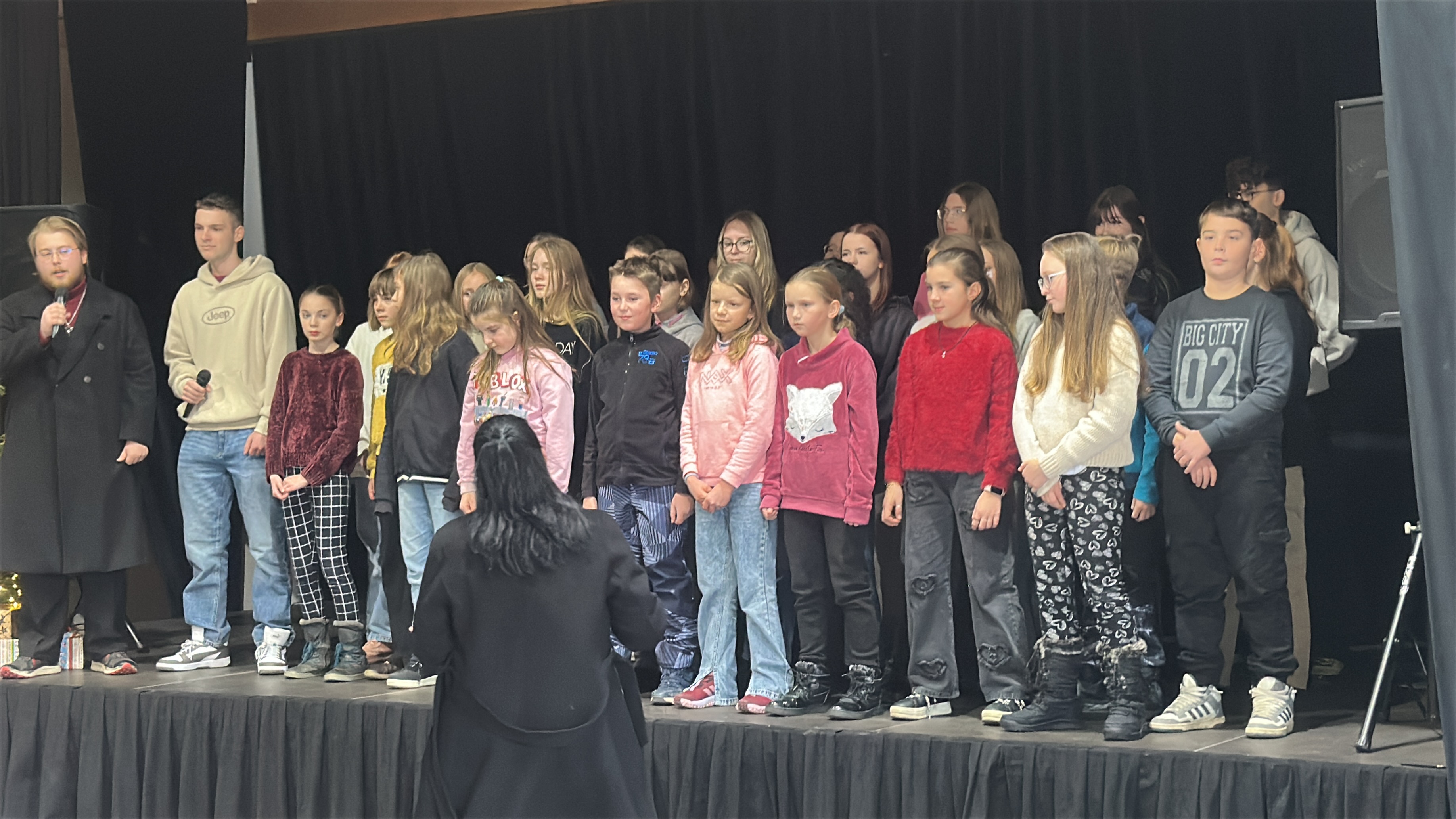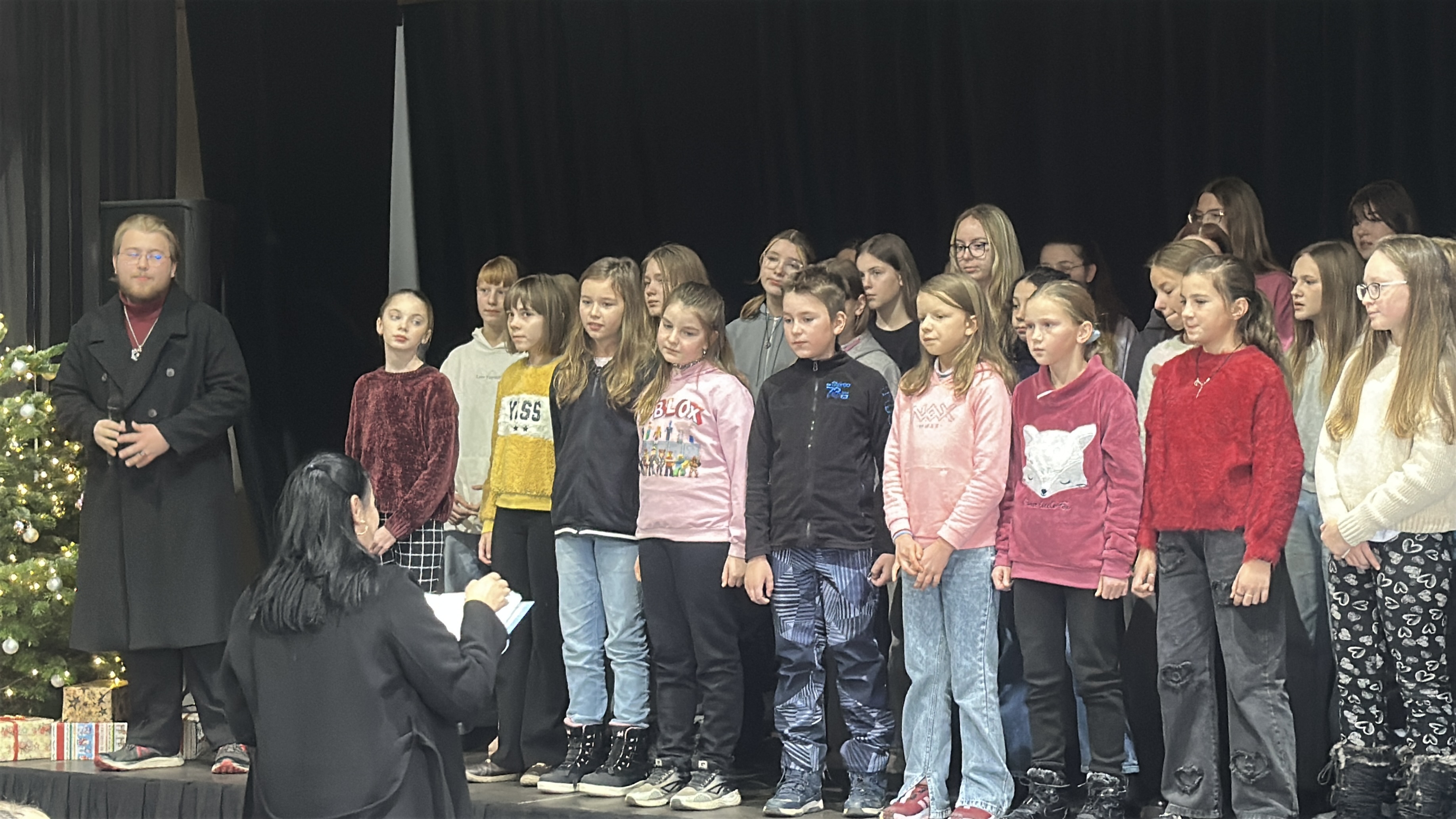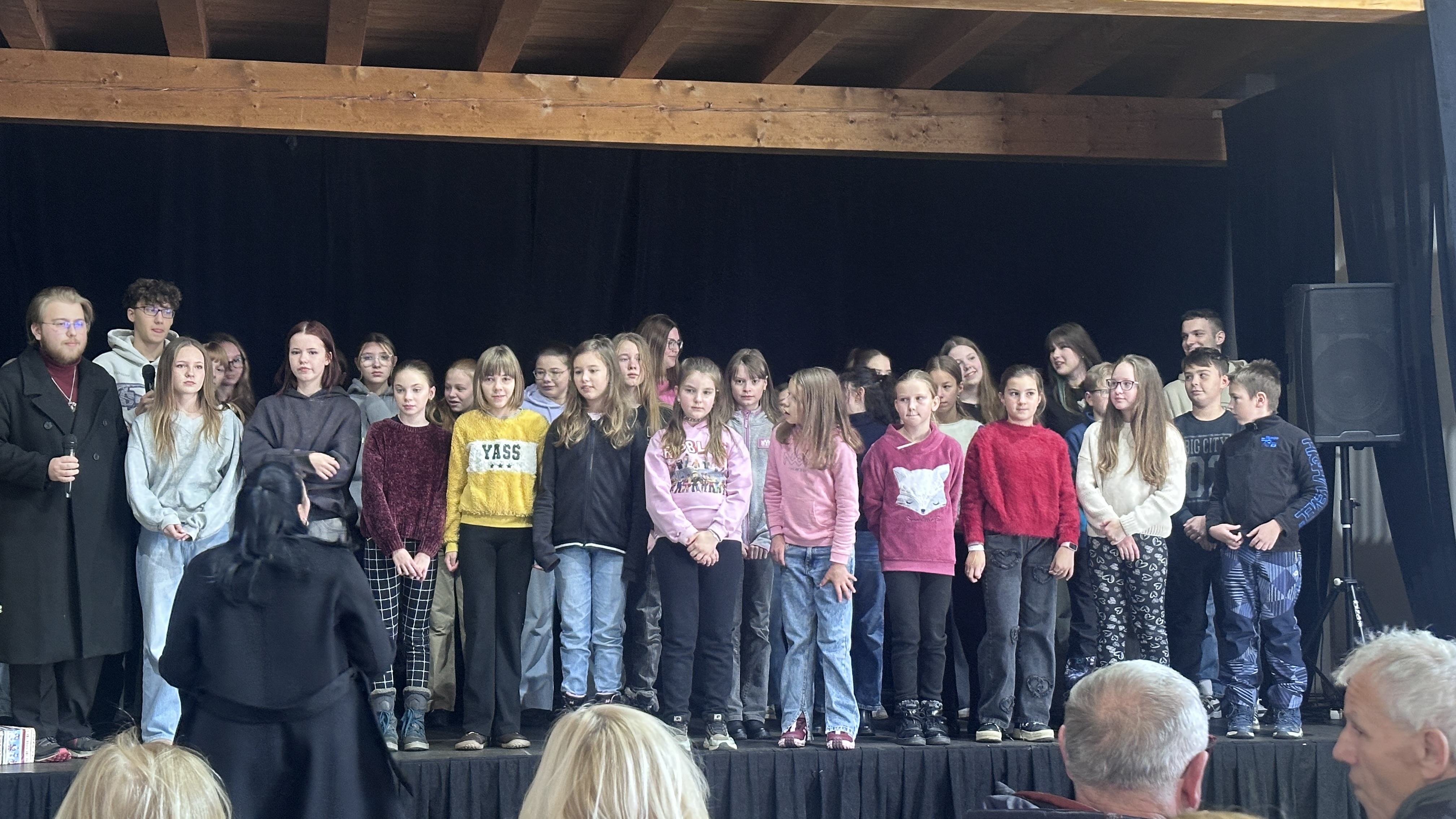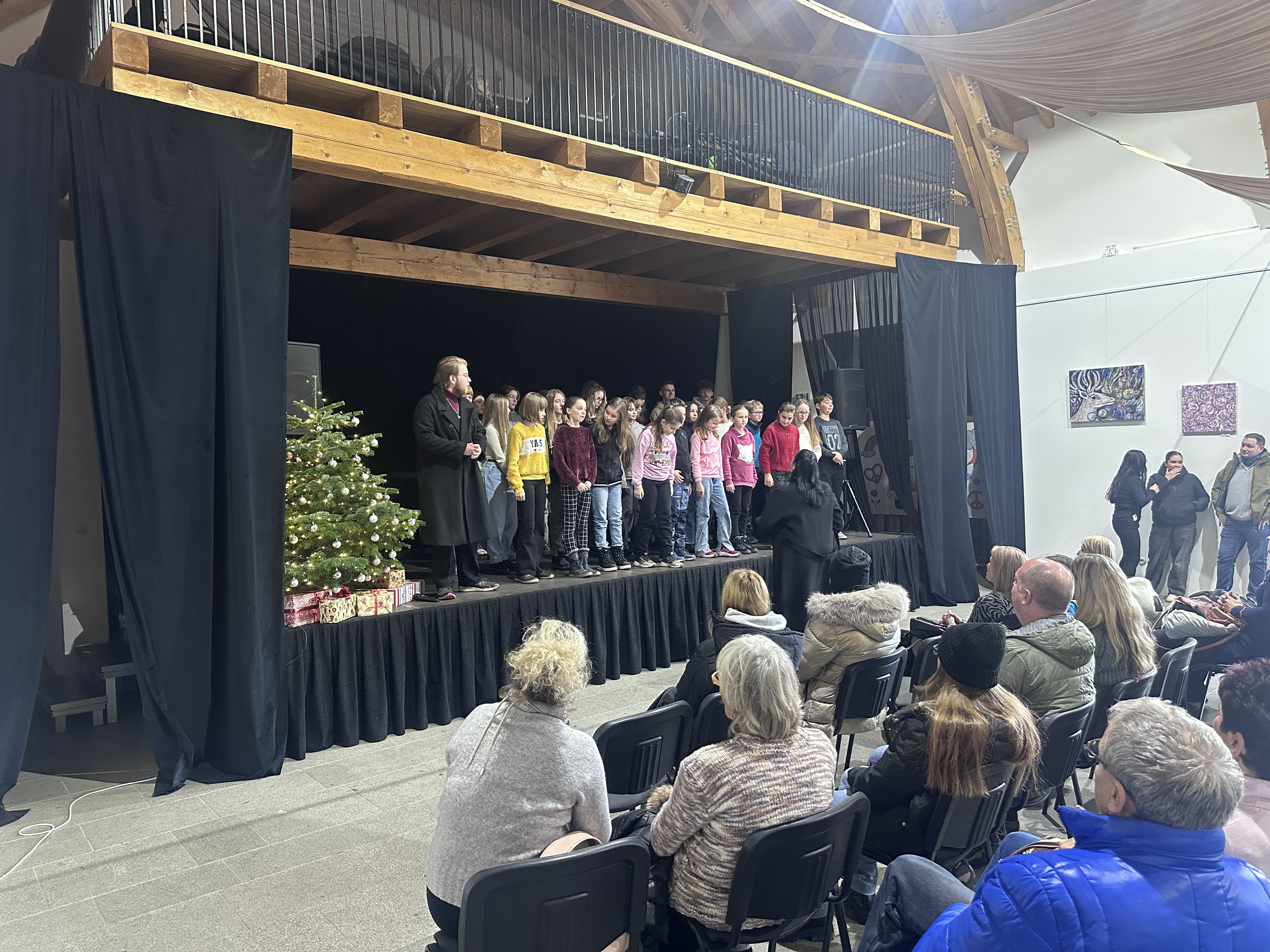 V tentýž den hned odpoledne, v sobotu 22. 11. 2025, si naši zpěváčci obou pěveckých sborů paní učitelky Hanky Němcové – Potřešťátka i Potřešťata mohli zazpívat na adventních trzích v Panském Dvoře v Telči. Moc děkujeme za pozvání paní Bukvajové a panu majiteli.  Děti byly připravené, že vždy vystupují venku a byly příjemně překvapené, že se nakonec oba dvacetiminutové bloky odehrály uvnitř moc hezkého prostředí společenského sálu. Zpívalo se pěkně a děti dostaly i malé občerstvení. Doufáme, že jsme i my přispěli k navození předsváteční atmosféry a k naladění na krásné adventní období.