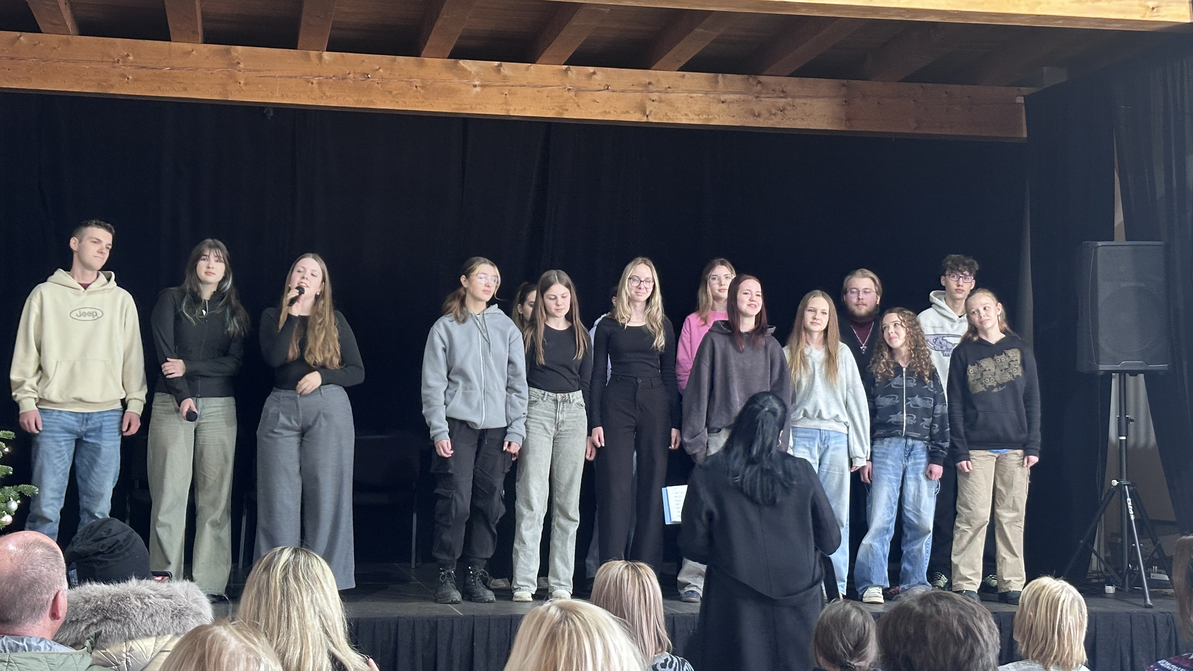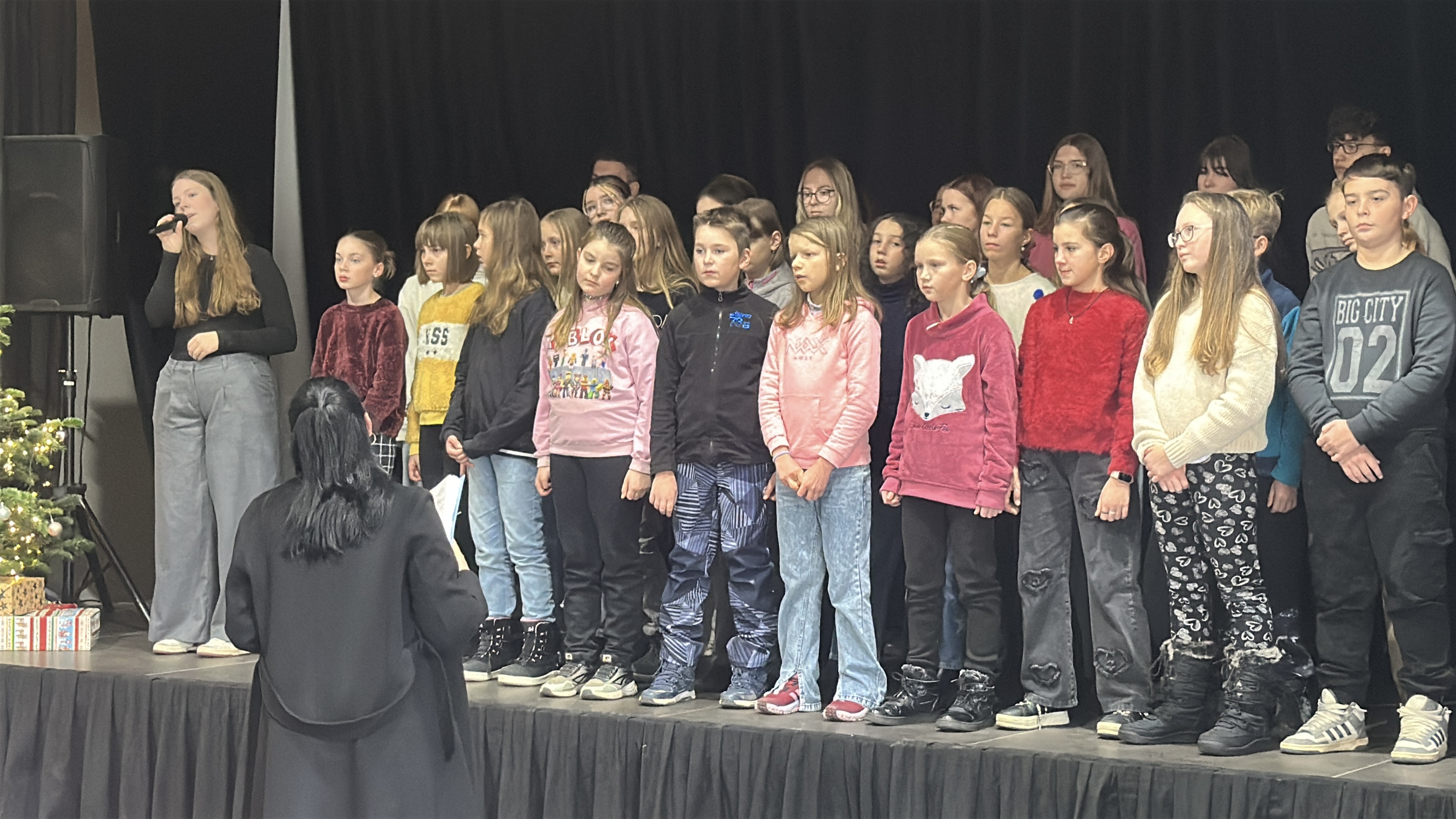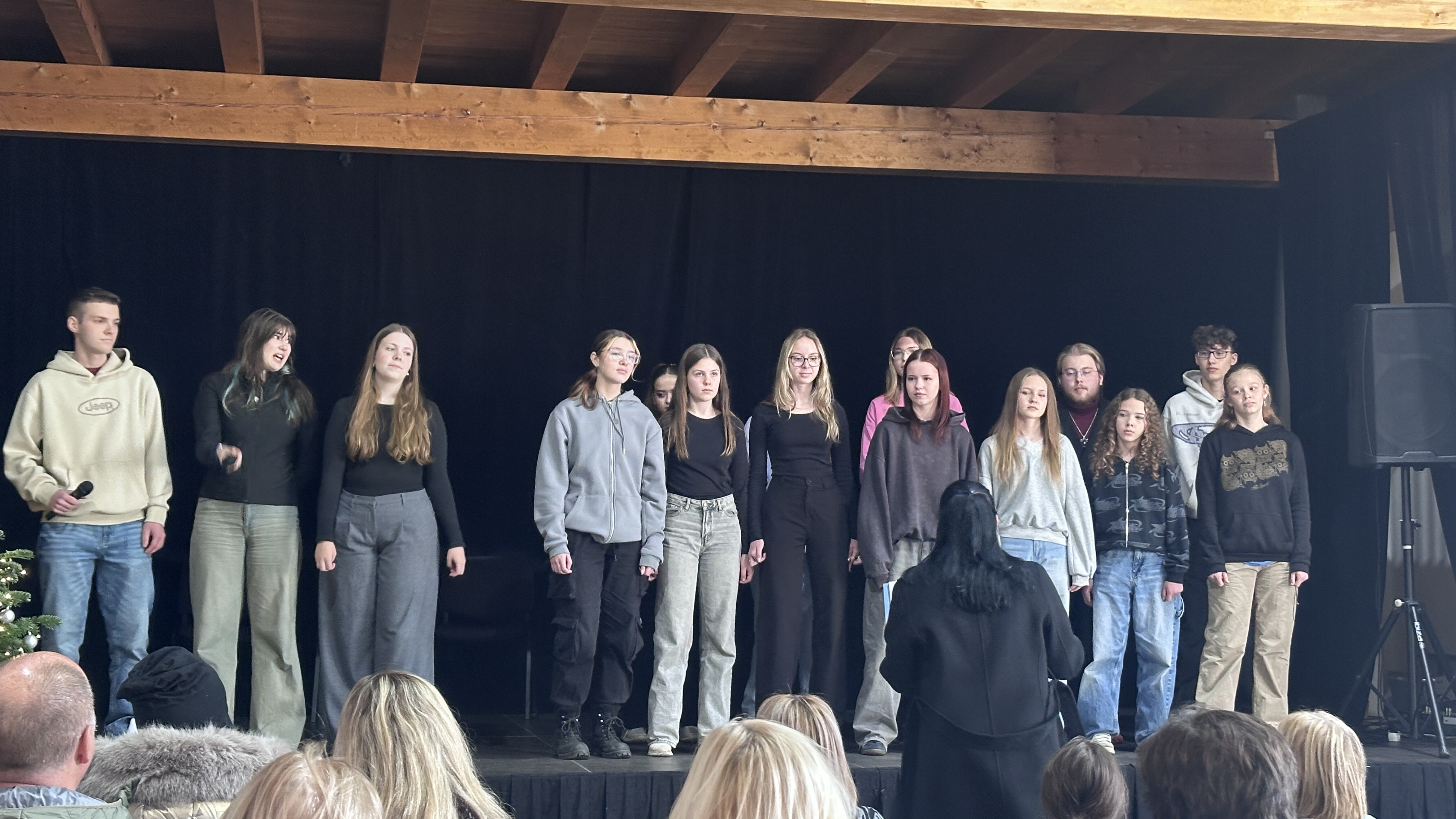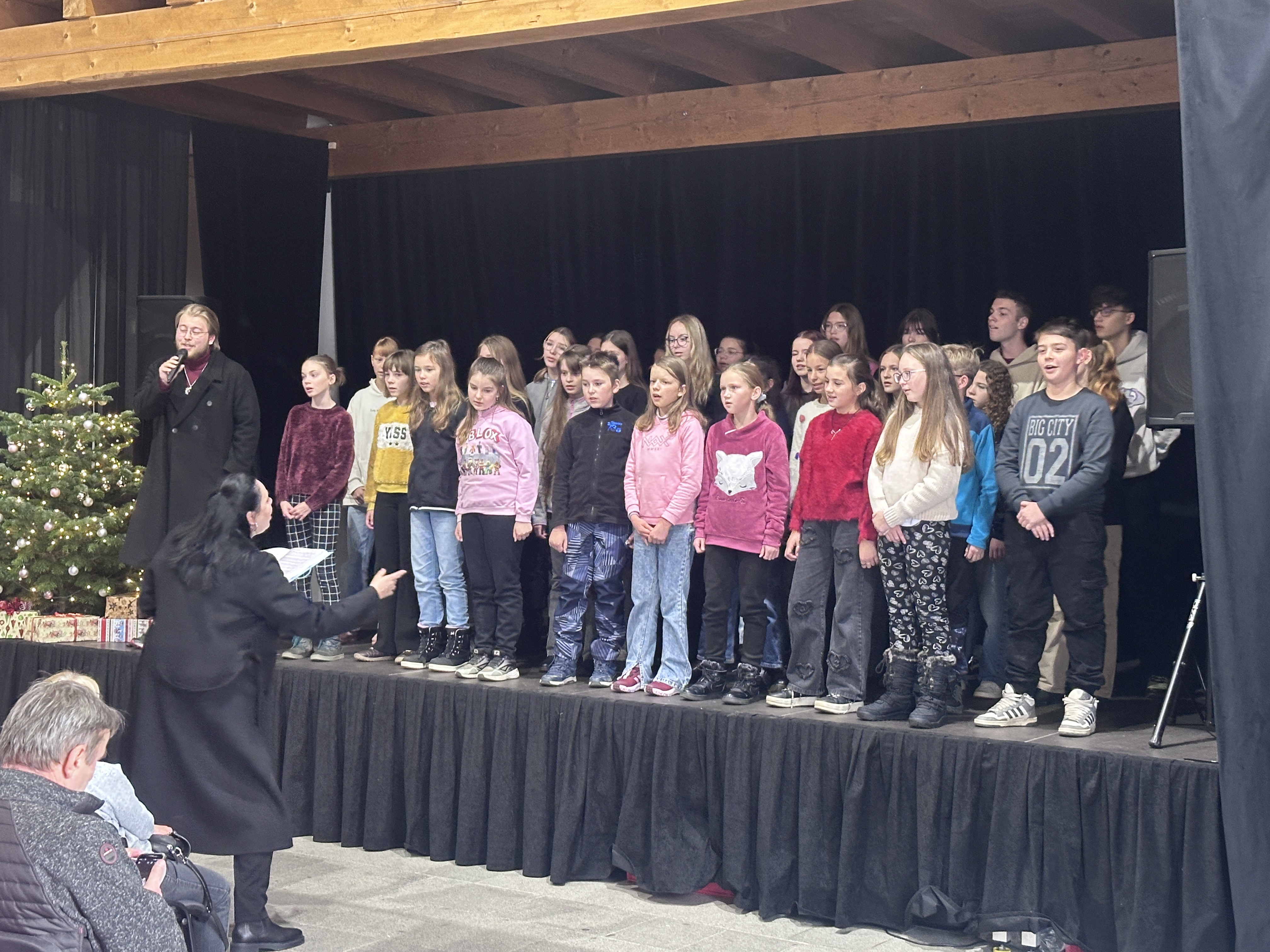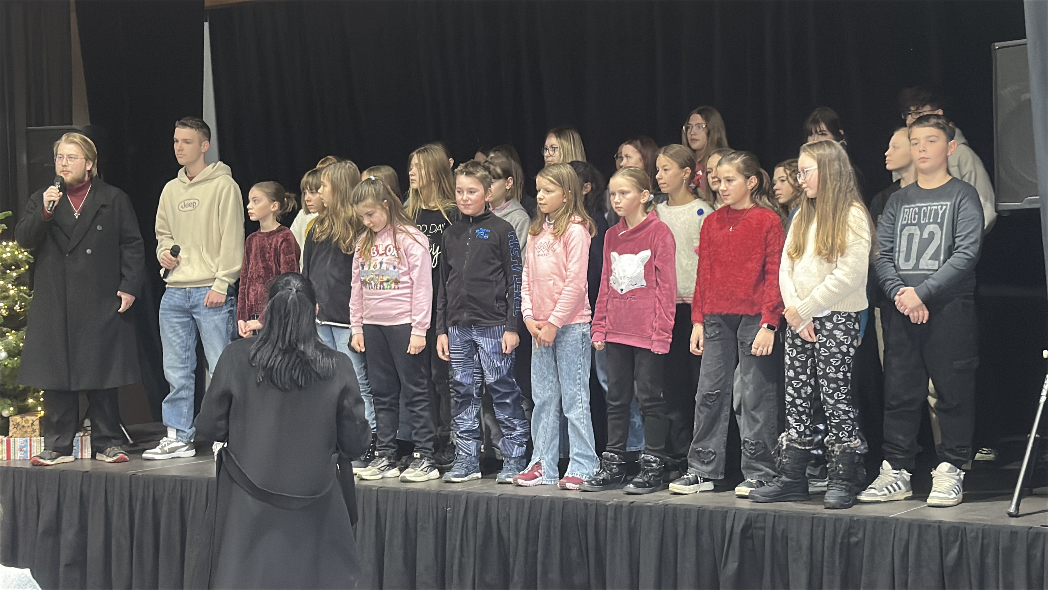 V tentýž den hned odpoledne, v sobotu 22. 11. 2025, si naši zpěváčci obou pěveckých sborů paní učitelky Hanky Němcové – Potřešťátka i Potřešťata mohli zazpívat na adventních trzích v Panském Dvoře v Telči. Moc děkujeme za pozvání paní Bukvajové a panu majiteli.  Děti byly připravené, že vždy vystupují venku a byly příjemně překvapené, že se nakonec oba dvacetiminutové bloky odehrály uvnitř moc hezkého prostředí společenského sálu. Zpívalo se pěkně a děti dostaly i malé občerstvení. Doufáme, že jsme i my přispěli k navození předsváteční atmosféry a k naladění na krásné adventní období.