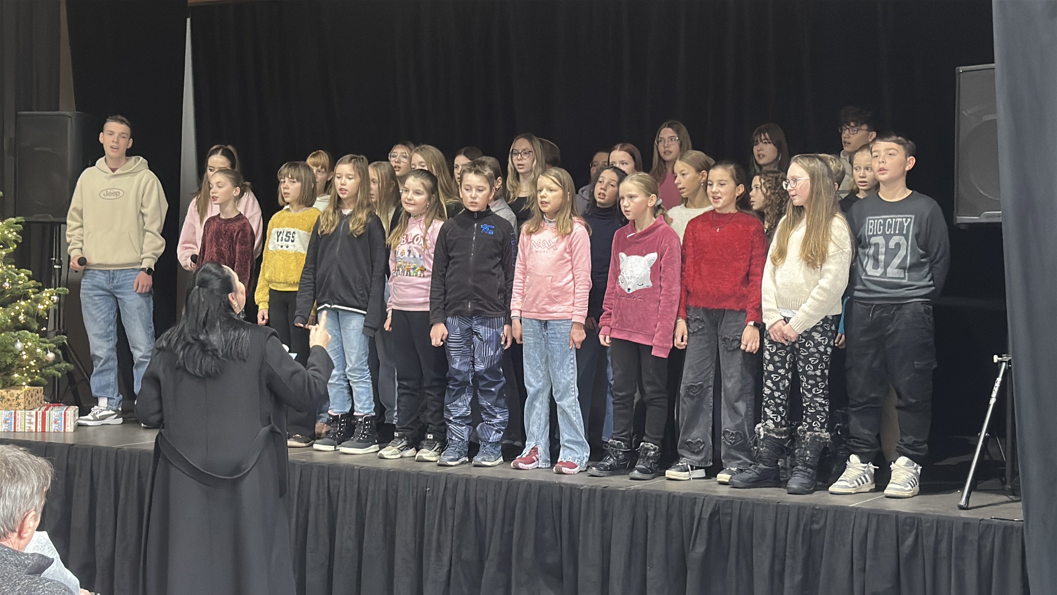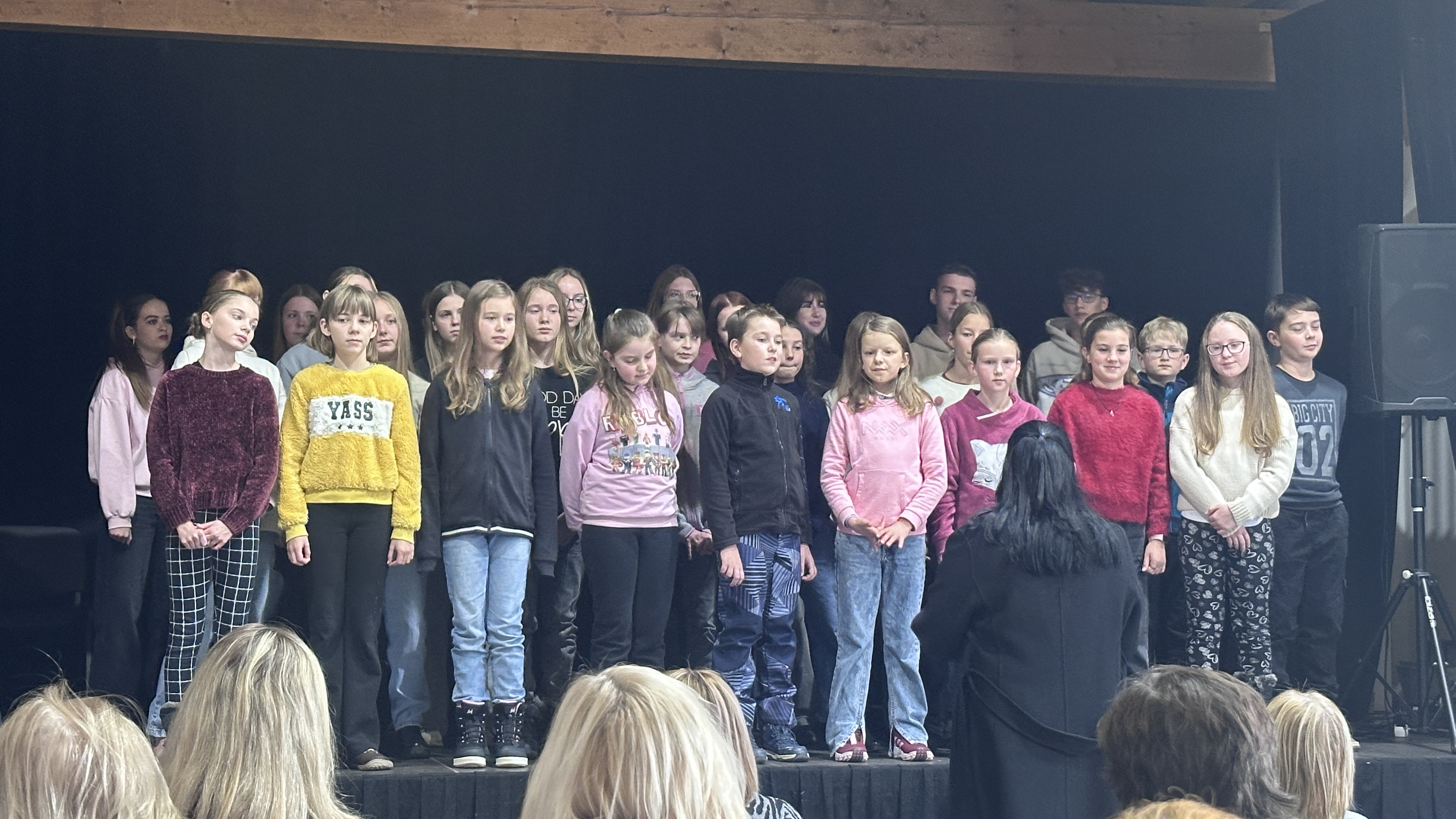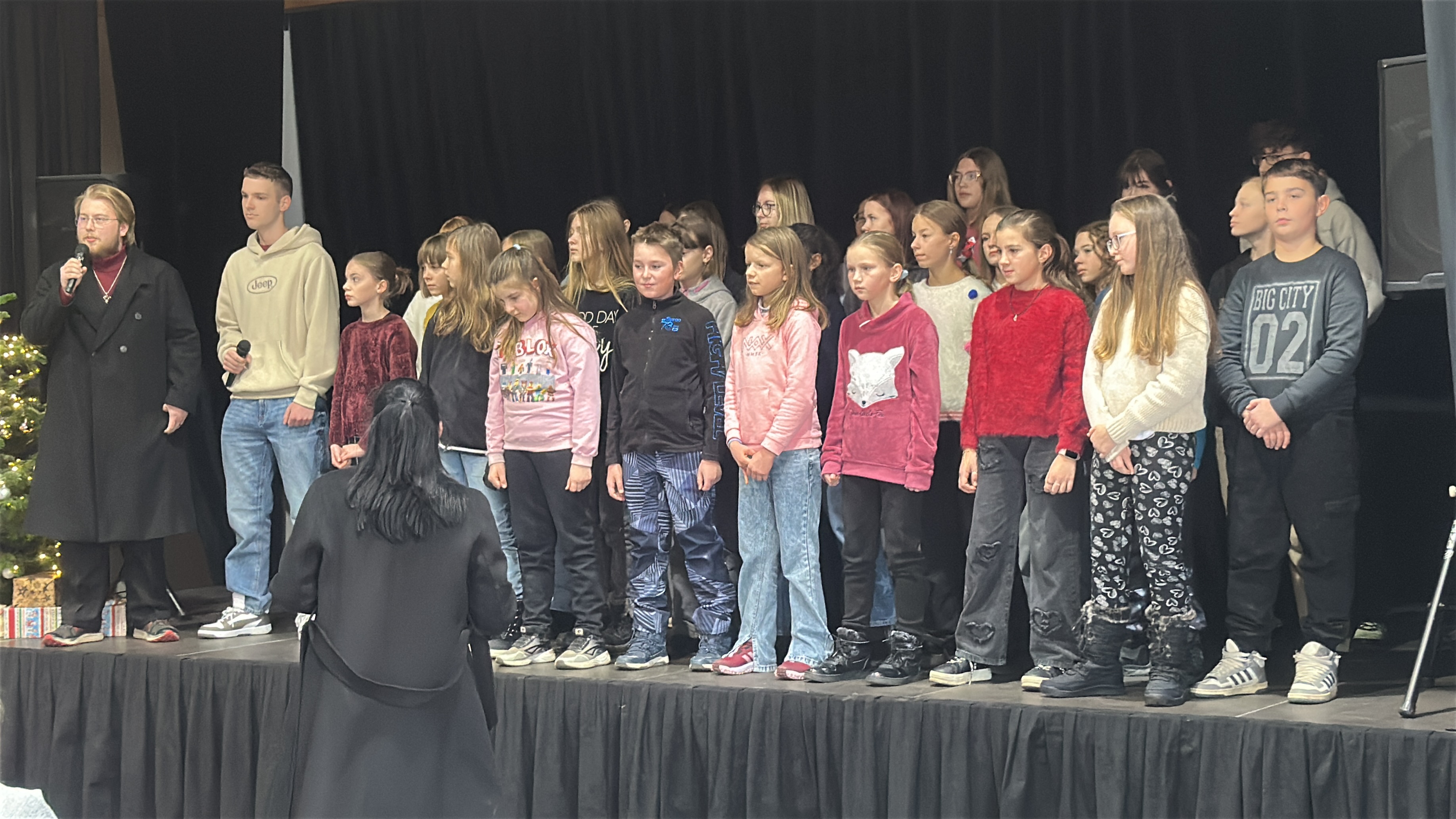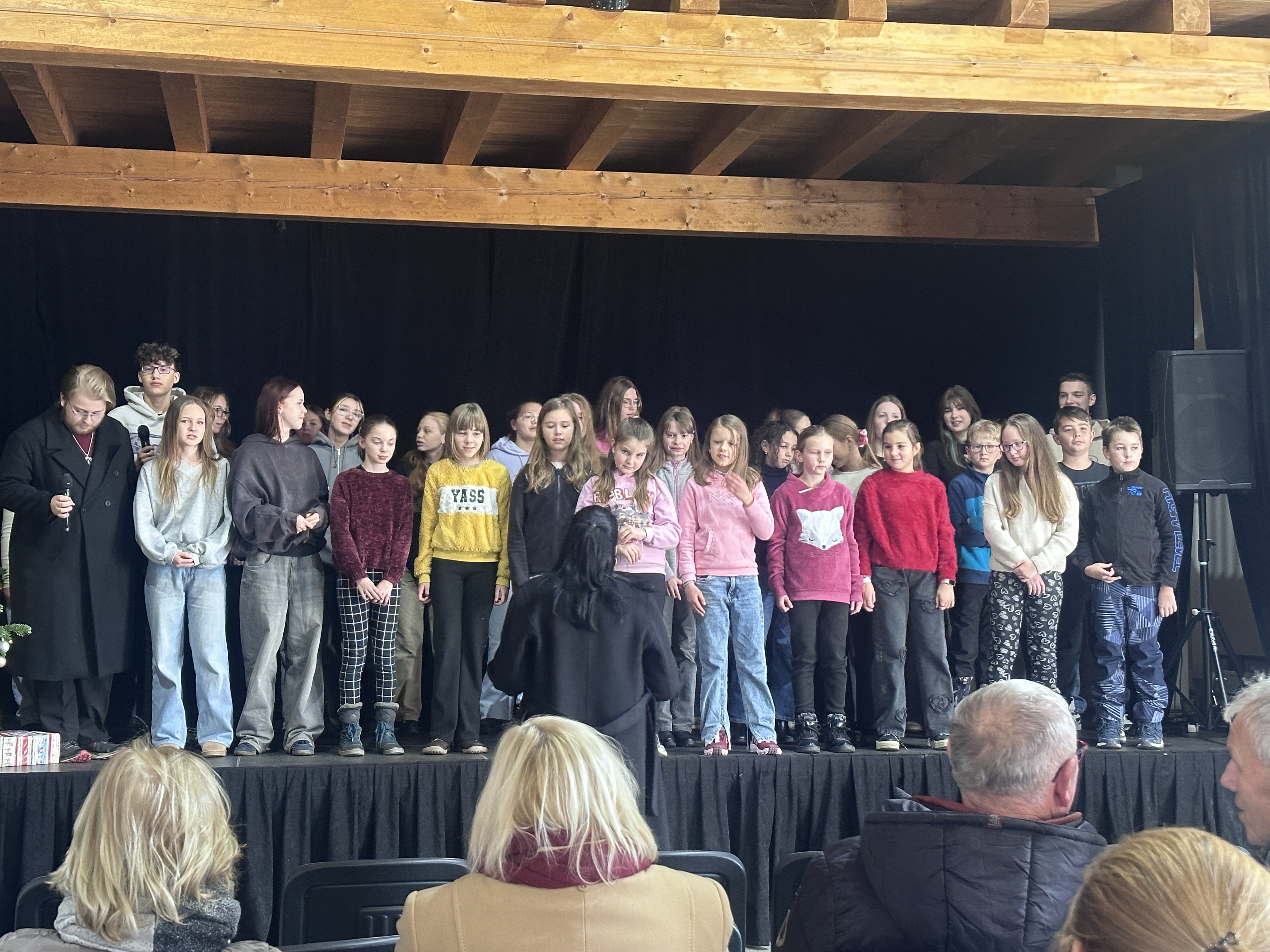 V tentýž den hned odpoledne, v sobotu 22. 11. 2025, si naši zpěváčci obou pěveckých sborů paní učitelky Hanky Němcové – Potřešťátka i Potřešťata mohli zazpívat na adventních trzích v Panském Dvoře v Telči. Moc děkujeme za pozvání paní Bukvajové a panu majiteli. Děti byly připravené, že vždy vystupují venku a byly příjemně překvapené, že se nakonec oba dvacetiminutové bloky odehrály uvnitř moc hezkého prostředí společenského sálu. Zpívalo se pěkně a děti dostaly i malé občerstvení. Doufáme, že jsme i my přispěli k navození předsváteční atmosféry a k naladění na krásné adventní období.