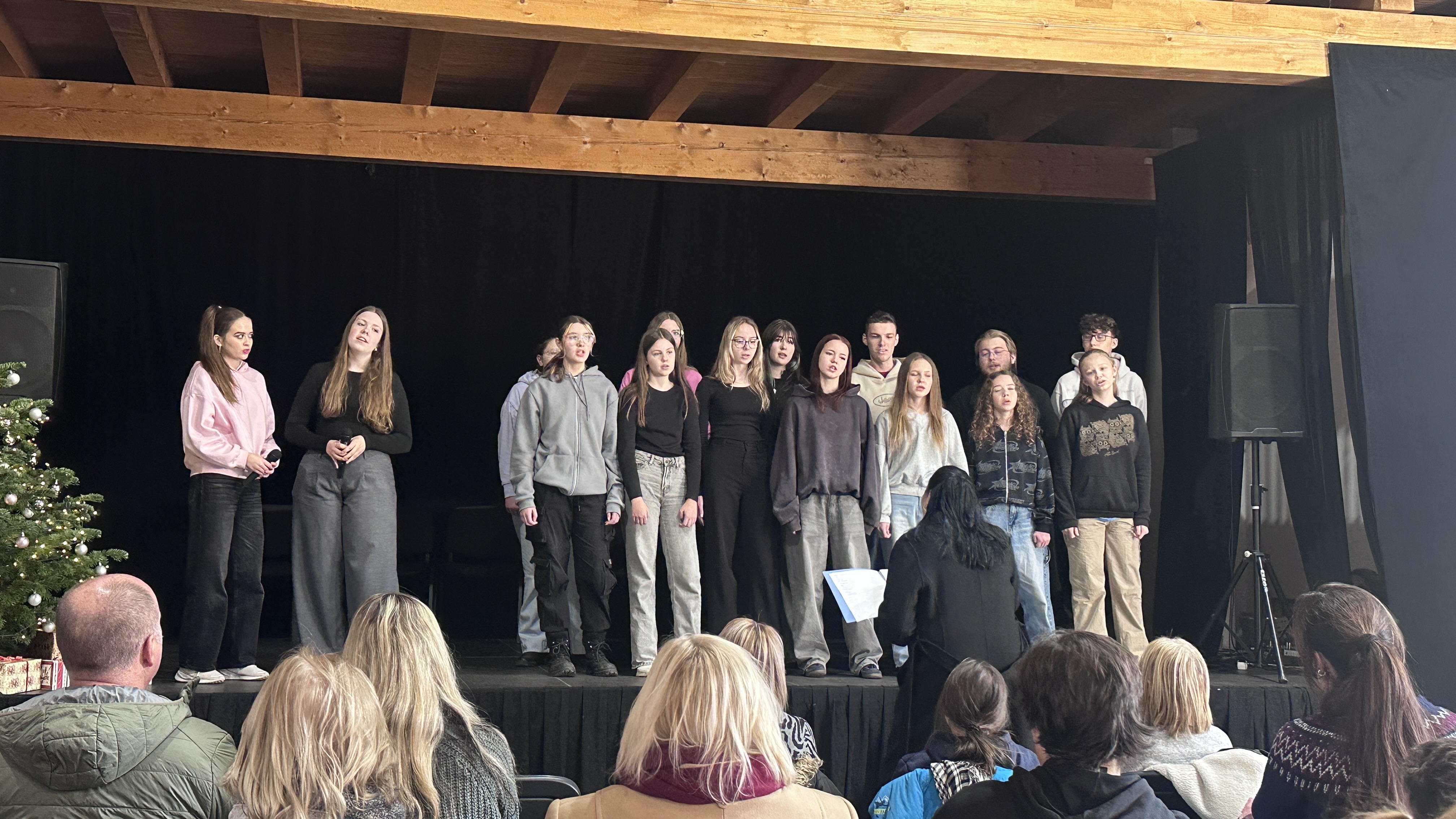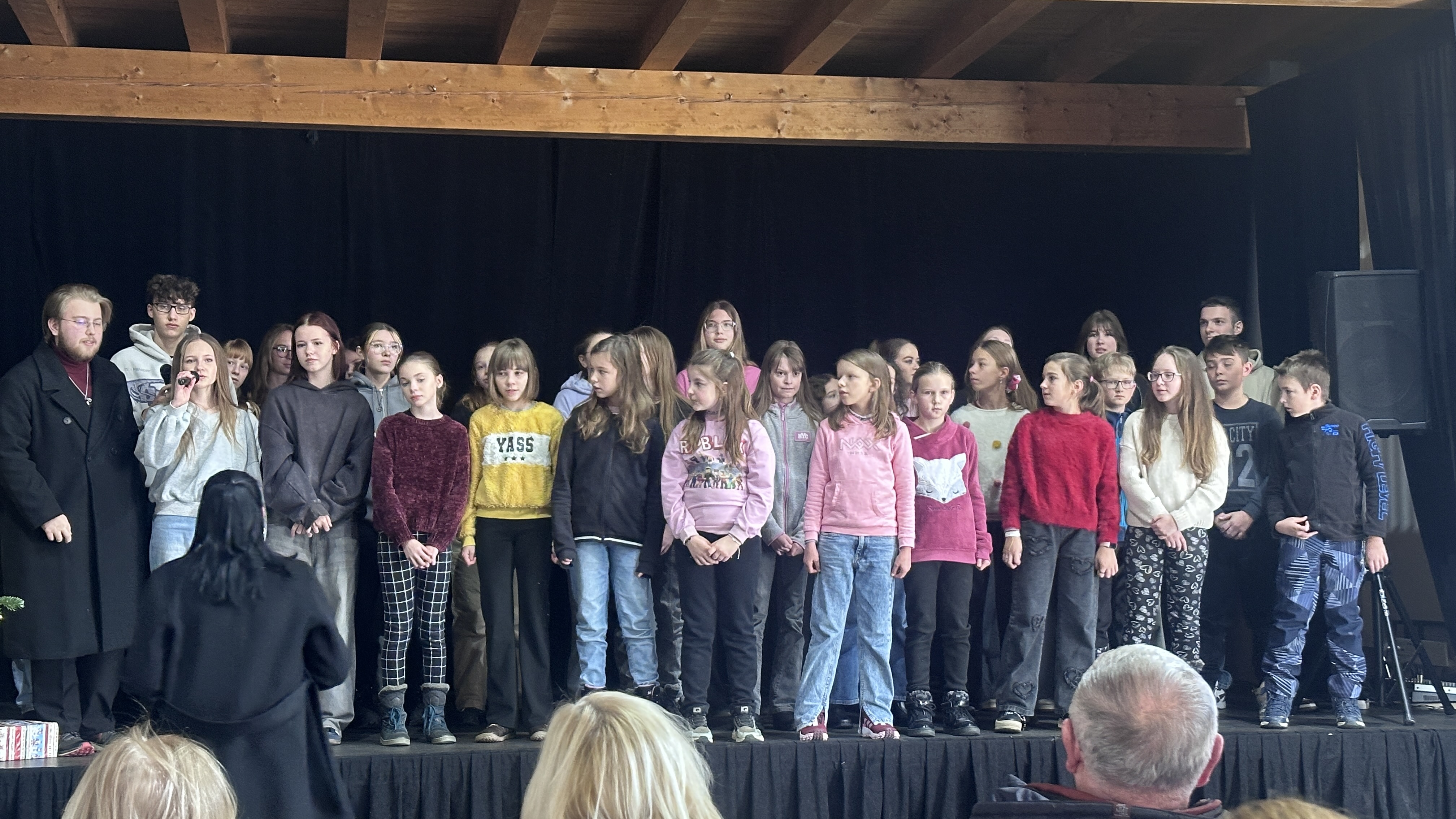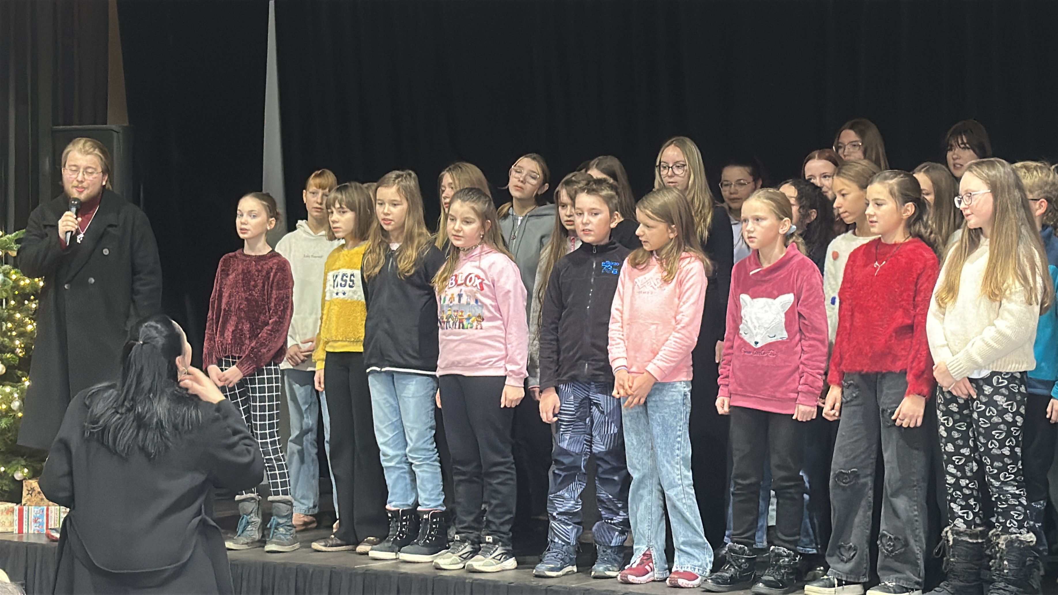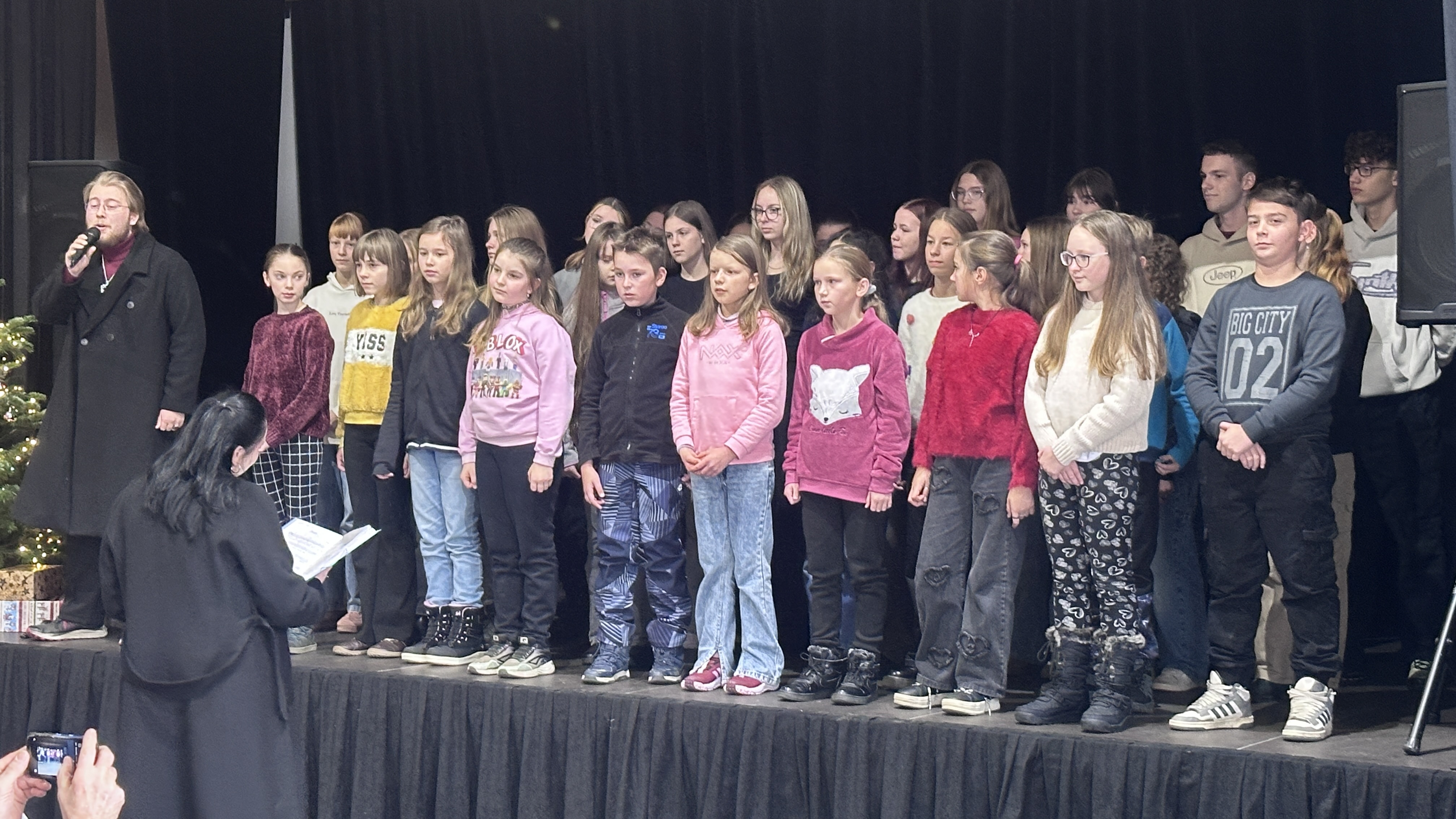 V tentýž den hned odpoledne, v sobotu 22. 11. 2025, si naši zpěváčci obou pěveckých sborů paní učitelky Hanky Němcové – Potřešťátka i Potřešťata mohli zazpívat na adventních trzích v Panském Dvoře v Telči. Moc děkujeme za pozvání paní Bukvajové a panu majiteli. Děti byly připravené, že vždy vystupují venku a byly příjemně překvapené, že se nakonec oba dvacetiminutové bloky odehrály uvnitř moc hezkého prostředí společenského sálu. Zpívalo se pěkně a děti dostaly i malé občerstvení. Doufáme, že jsme i my přispěli k navození předsváteční atmosféry a k naladění na krásné adventní období.