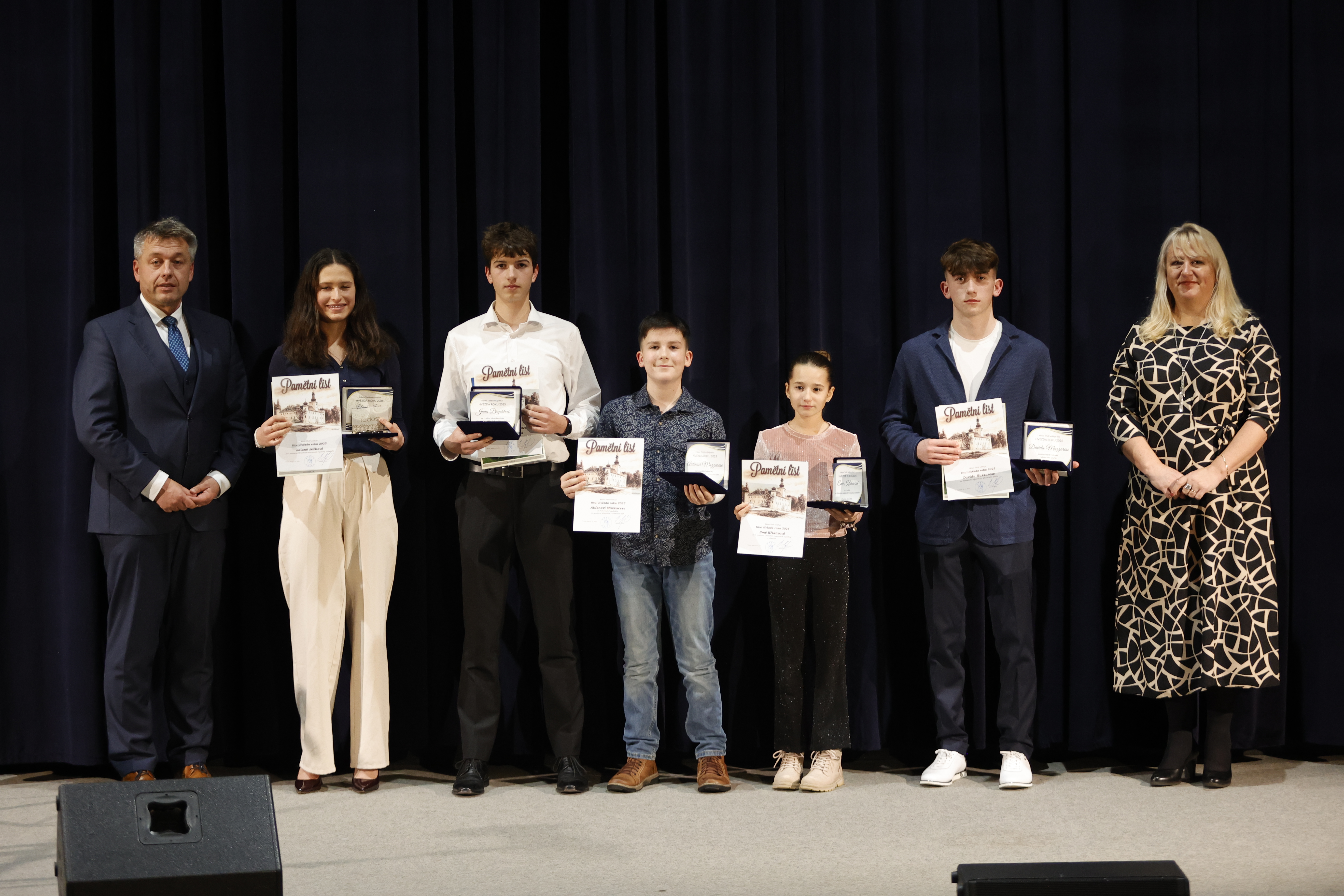 Součástí večera bylo také slavnostní předání ocenění Hvězda roku 2025. Mezi oceněnými byl i náš žák Jan Brychta, který si v loňském roce přivezl první místo v soutěži ve hře na baskřídlovku vyhlášené MŠMT. Jeho úspěch byl po právu oceněn potleskem. Velké poděkování patří i učitelům, kteří jednotlivé výstupy trpělivě připravovali a dodávali nejen dětem jistotu a podporu – Miluši Havlíkové, Katrin Dvořákové, Antonínu Vidlákovi, Marii Bazalové, Veronice Krejčířové a Petru Vohoskovi. Jejich práce byla na celém večeru velmi znát a bez jejich vedení by se mnohá vystoupení vůbec neuskutečnila. Největší dík si ale zaslouží samotné rodiny. Za čas, který věnovaly nácviku. Za odvahu překonat trému. Za to, že vystoupily společně – děti s rodiči, sourozenci, někdy i s tetami či prarodiči. Koncert rodin je výjimečný právě tím, že nepředstavuje pouze hudební čísla, ale především společné zážitky, které se nesmazatelně zapisují do rodinné paměti. Večer byl plný úsměvů, potlesku a upřímné radosti z toho, že hudba dokáže spojovat. Děkujeme všem, kteří přišli, všem, kteří vystoupili, i všem, kteří pomohli večer připravit. Byl to koncert, který znovu potvrdil, že když se spojí rodina, hudba a srdce, vzniká něco opravdu krásného.