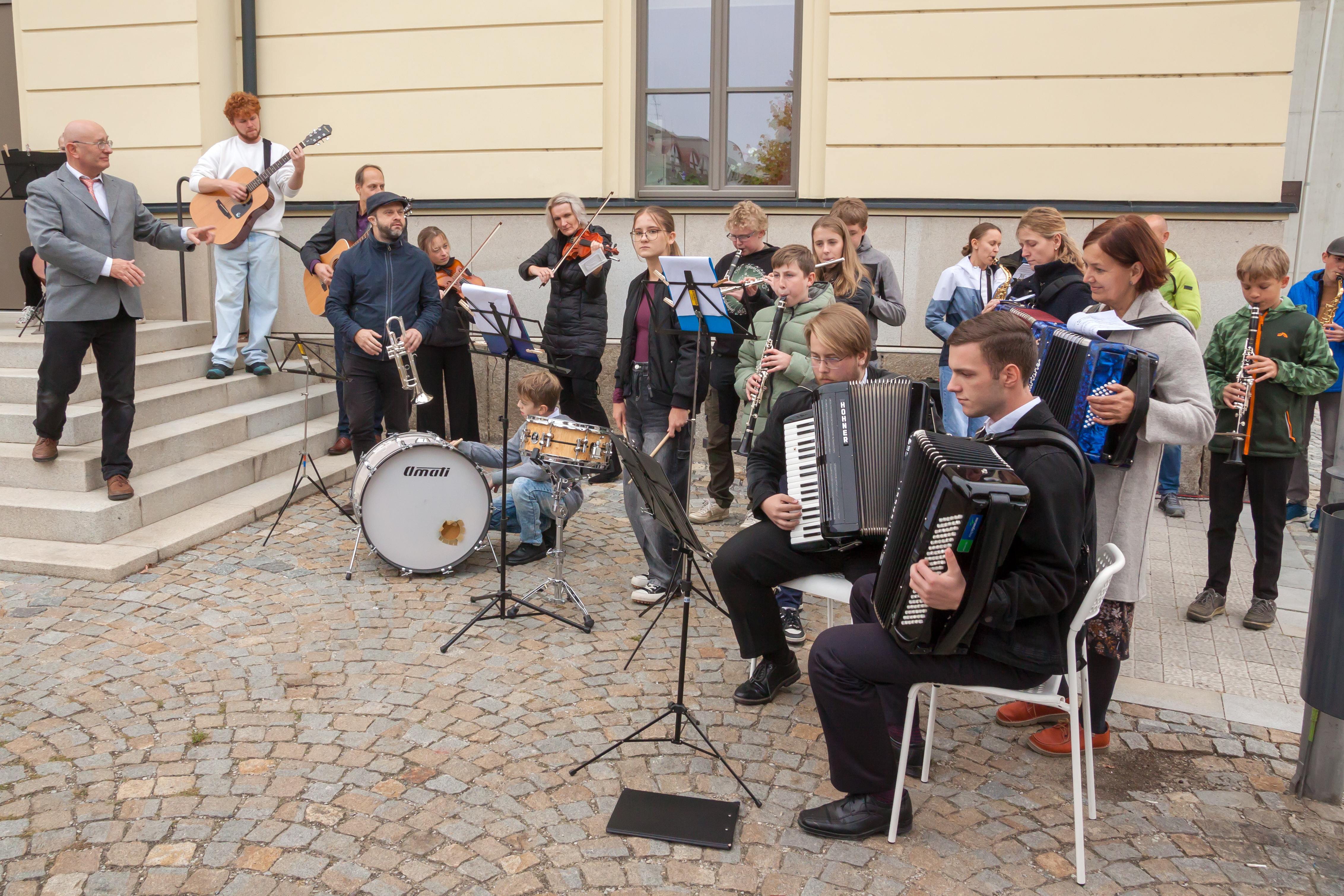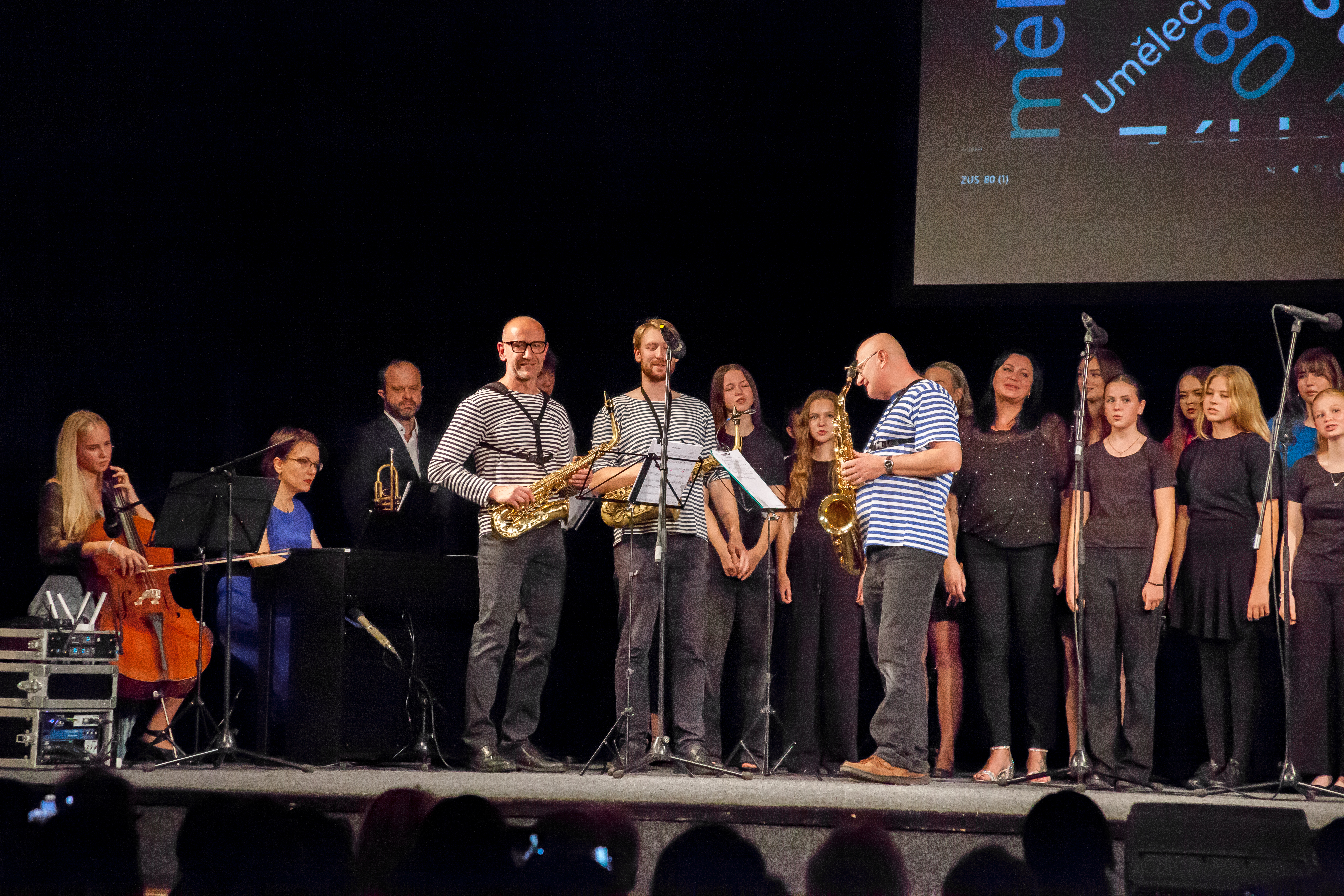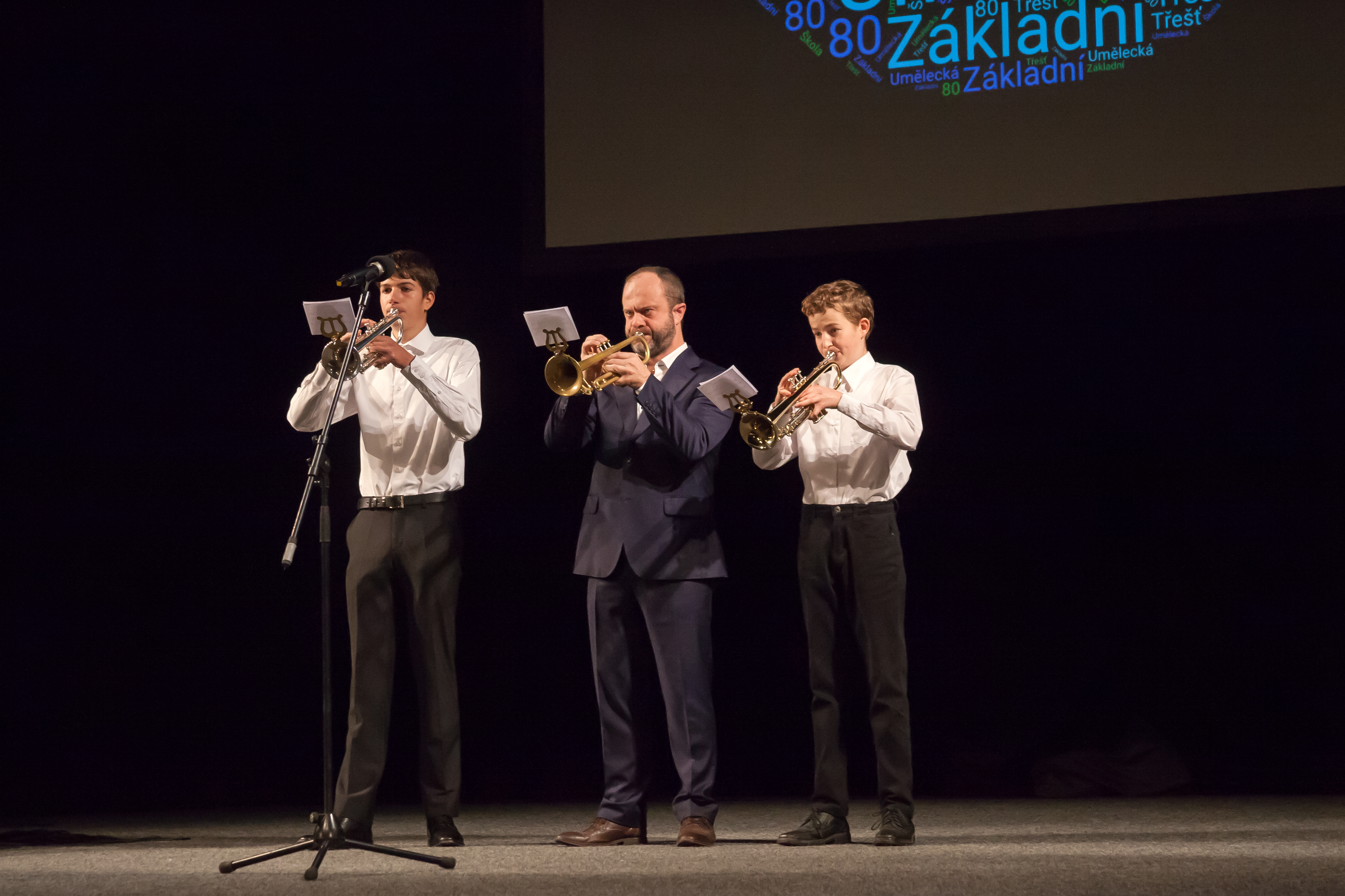 V sobotu se naše město Třešť rozezpívalo při oslavách 80. výročí od založení základní umělecké školy. Slavnostní den zahájilo vystoupení na náměstí, kde děti, bývalí absolventi a učitelé společně zahráli novou hymnu školy, jejímž autorem je náš pan učitel Antonín Vidlák. Krátce po odehrání hymny jsme kvůli přicházejícímu dešti přenesli nástroje do školy, kde následovaly komentované prohlídky. Návštěvníky provázeli téměř všichni učitelé, kteří si připravili nejen zajímavé informace, ale i spoustu humoru. O zábavu se postarali pánové Petr Vohoska a Jaroslav Šimánek, kteří se převlékli za „otravné školníky“ a s typickým nadhledem „usměrňovali“ pochod výprav školou. Smích provázel i zastávku u pana Antonína Vidláka, jenž návštěvníky zkoušel z hudební nauky, nebo v učebně pana Standy Gerstnera, nové posily literárně-dramatického oboru. Ten každou výpravu vzal na jeviště, aby si mohli vyzkoušet, jaké je to stát v záři reflektorů a před publikem. V každé učebně hráli žáci na své nástroje a předváděli, co se u nás vyučuje. Nechyběli ani žáci výtvarného a tanečního oboru. Ve foyer Kulturního domu byla připravena výstava výtvarných děl a historie školy, zatímco ve vstupních prostorách školy zaujal fotokoutek a výstava keramiky. O tyto části se s žáky postaraly paní učitelky Erika Houserová a Sabina Kubová Lašanová. Večer pak patřil Slavnostnímu koncertu, na kterém vystoupili učitelé se svými bývalými absolventy i současnými žáky. Představili se také žáci tanečního oboru – zatančili nejen na náměstí, ale i během koncertu. Celým večerem s humorem provázel „šílený učitel“ Standa Gerstner. Atmosféra byla veselá i dojemná, plná vzpomínek na bývalé ředitele a učitele. Velkou radost nám udělala i návštěva bývalé paní ředitelky Heleny Šimánkové. Zazněla mnohá přání a slova podpory – od pana ředitele Karla Podškubky, pana starosty Vladislava Hynka, místostarostky paní Evy Požárové, lektora Akademie pana Milana Šindeláře i doktora Víta Kaňkovského. Během večerního koncertu obdržel pan starosta jako hudební dar městu Třešť fanfáru, která je rovněž z pera pana učitele Antonína Vidláka. Fanfáru nahráli pan učitel Petr Vohoska se žáky Adamem a Janem Brychtovými, a věříme, že se stane nedílnou součástí všech budoucích školních i městských slavností. Při této příležitosti jsme s úctou poděkovali také nejdéle působící paní učitelce Miluši Havlíkové, která si za neuvěřitelných 46 let pedagogické práce u nás ve škole převzala květinu a srdečné poděkování. Na závěr koncertu se znovu rozezněla hymna školy, a při písni Život je jen náhoda se k účinkujícím spontánně přidalo celé publikum. Děkujeme z celého srdce za potlesk ve stoje, za podporu města Třešť, za spolupráci zaměstnanců Kulturního domu, za všechny milé návštěvníky školy i koncertu a především našim absolventům, že se vrátili, aby s námi znovu hráli a zpívali. Byl to den plný emocí, radosti a hrdosti, kdy jsme si naplno uvědomili, jak důležitá je naše práce pro děti, rodiče i prarodiče – a jak krásné okamžiky můžeme společně prožívat. Děkujeme všem, kdo byli u toho!