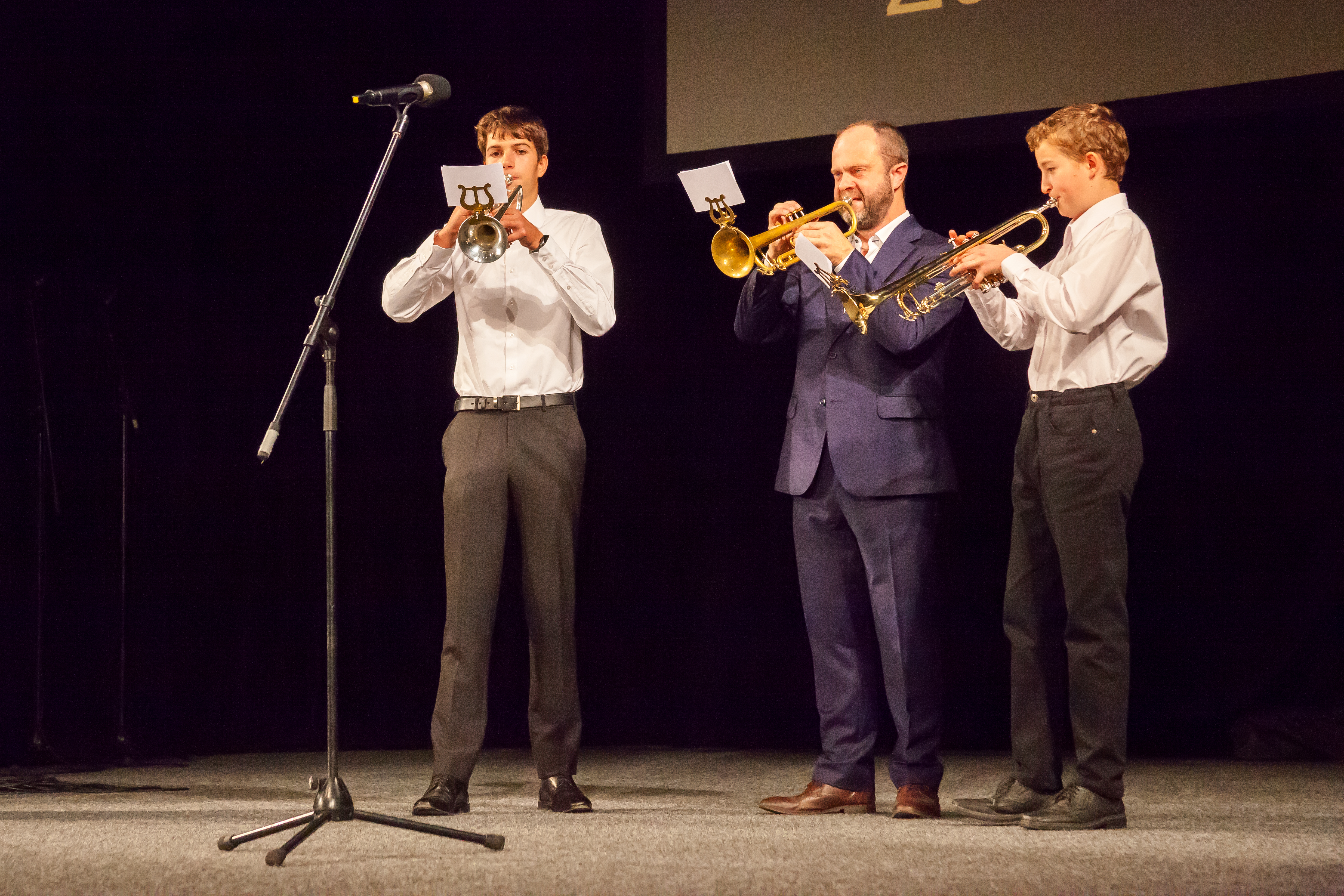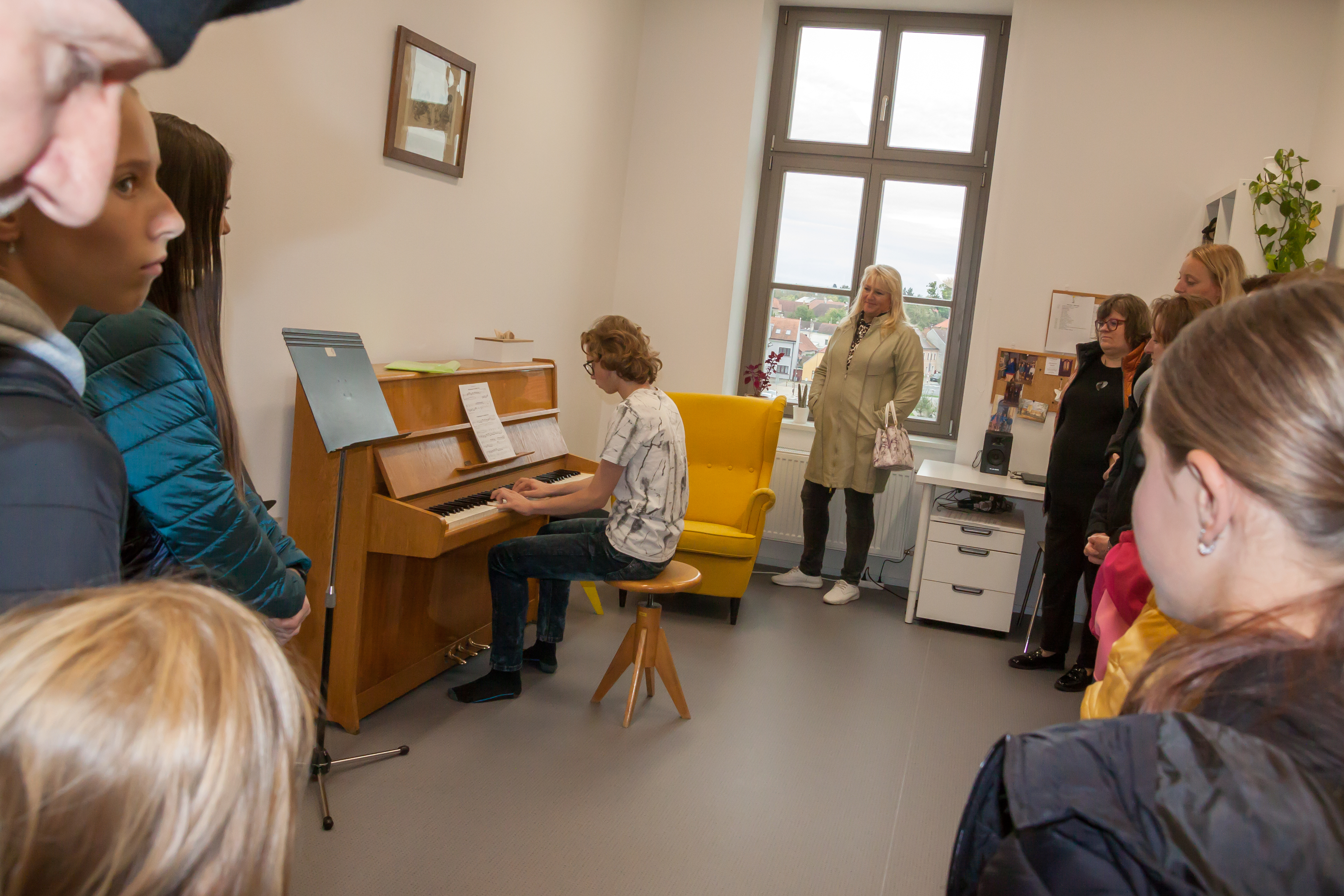 V sobotu se naše město Třešť rozezpívalo při oslavách 80. výročí od založení základní umělecké školy. Slavnostní den zahájilo vystoupení na náměstí, kde děti, bývalí absolventi a učitelé společně zahráli novou hymnu školy, jejímž autorem je náš pan učitel Antonín Vidlák. Krátce po odehrání hymny jsme kvůli přicházejícímu dešti přenesli nástroje do školy, kde následovaly komentované prohlídky. Návštěvníky provázeli téměř všichni učitelé, kteří si připravili nejen zajímavé informace, ale i spoustu humoru. O zábavu se postarali pánové Petr Vohoska a Jaroslav Šimánek, kteří se převlékli za „otravné školníky“ a s typickým nadhledem „usměrňovali“ pochod výprav školou. Smích provázel i zastávku u pana Antonína Vidláka, jenž návštěvníky zkoušel z hudební nauky, nebo v učebně pana Standy Gerstnera, nové posily literárně-dramatického oboru. Ten každou výpravu vzal na jeviště, aby si mohli vyzkoušet, jaké je to stát v záři reflektorů a před publikem. V každé učebně hráli žáci na své nástroje a předváděli, co se u nás vyučuje. Nechyběli ani žáci výtvarného a tanečního oboru. Ve foyer Kulturního domu byla připravena výstava výtvarných děl a historie školy, zatímco ve vstupních prostorách školy zaujal fotokoutek a výstava keramiky. O tyto části se s žáky postaraly paní učitelky Erika Houserová a Sabina Kubová Lašanová. Večer pak patřil Slavnostnímu koncertu, na kterém vystoupili učitelé se svými bývalými absolventy i současnými žáky. Představili se také žáci tanečního oboru – zatančili nejen na náměstí, ale i během koncertu. Celým večerem s humorem provázel „šílený učitel“ Standa Gerstner. Atmosféra byla veselá i dojemná, plná vzpomínek na bývalé ředitele a učitele. Velkou radost nám udělala i návštěva bývalé paní ředitelky Heleny Šimánkové. Zazněla mnohá přání a slova podpory – od pana ředitele Karla Podškubky, pana starosty Vladislava Hynka, místostarostky paní Evy Požárové, lektora Akademie pana Milana Šindeláře i doktora Víta Kaňkovského. Během večerního koncertu obdržel pan starosta jako hudební dar městu Třešť fanfáru, která je rovněž z pera pana učitele Antonína Vidláka. Fanfáru nahráli pan učitel Petr Vohoska se žáky Adamem a Janem Brychtovými, a věříme, že se stane nedílnou součástí všech budoucích školních i městských slavností. Při této příležitosti jsme s úctou poděkovali také nejdéle působící paní učitelce Miluši Havlíkové, která si za neuvěřitelných 46 let pedagogické práce u nás ve škole převzala květinu a srdečné poděkování. Na závěr koncertu se znovu rozezněla hymna školy, a při písni Život je jen náhoda se k účinkujícím spontánně přidalo celé publikum. Děkujeme z celého srdce za potlesk ve stoje, za podporu města Třešť, za spolupráci zaměstnanců Kulturního domu, za všechny milé návštěvníky školy i koncertu a především našim absolventům, že se vrátili, aby s námi znovu hráli a zpívali. Byl to den plný emocí, radosti a hrdosti, kdy jsme si naplno uvědomili, jak důležitá je naše práce pro děti, rodiče i prarodiče – a jak krásné okamžiky můžeme společně prožívat. Děkujeme všem, kdo byli u toho!