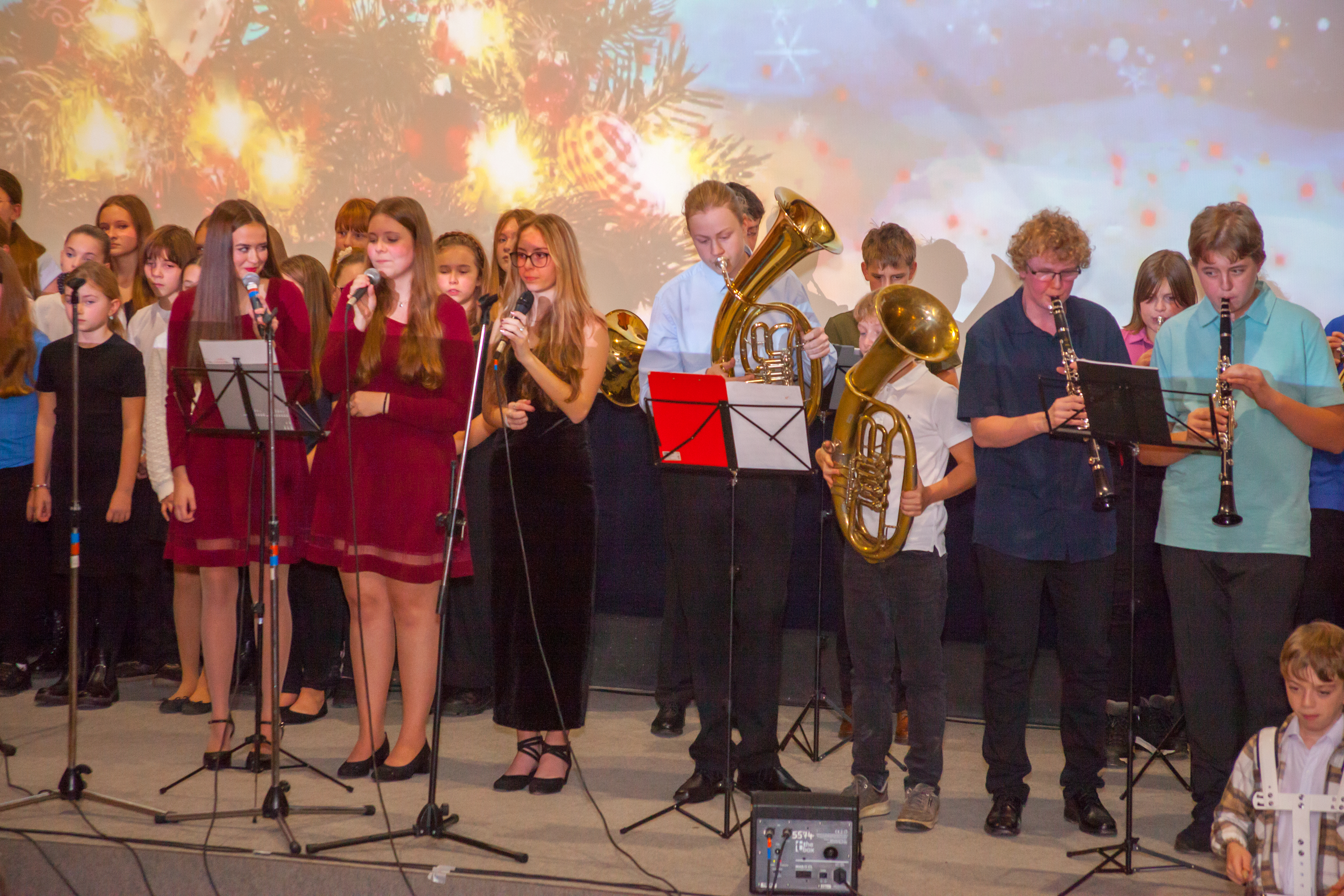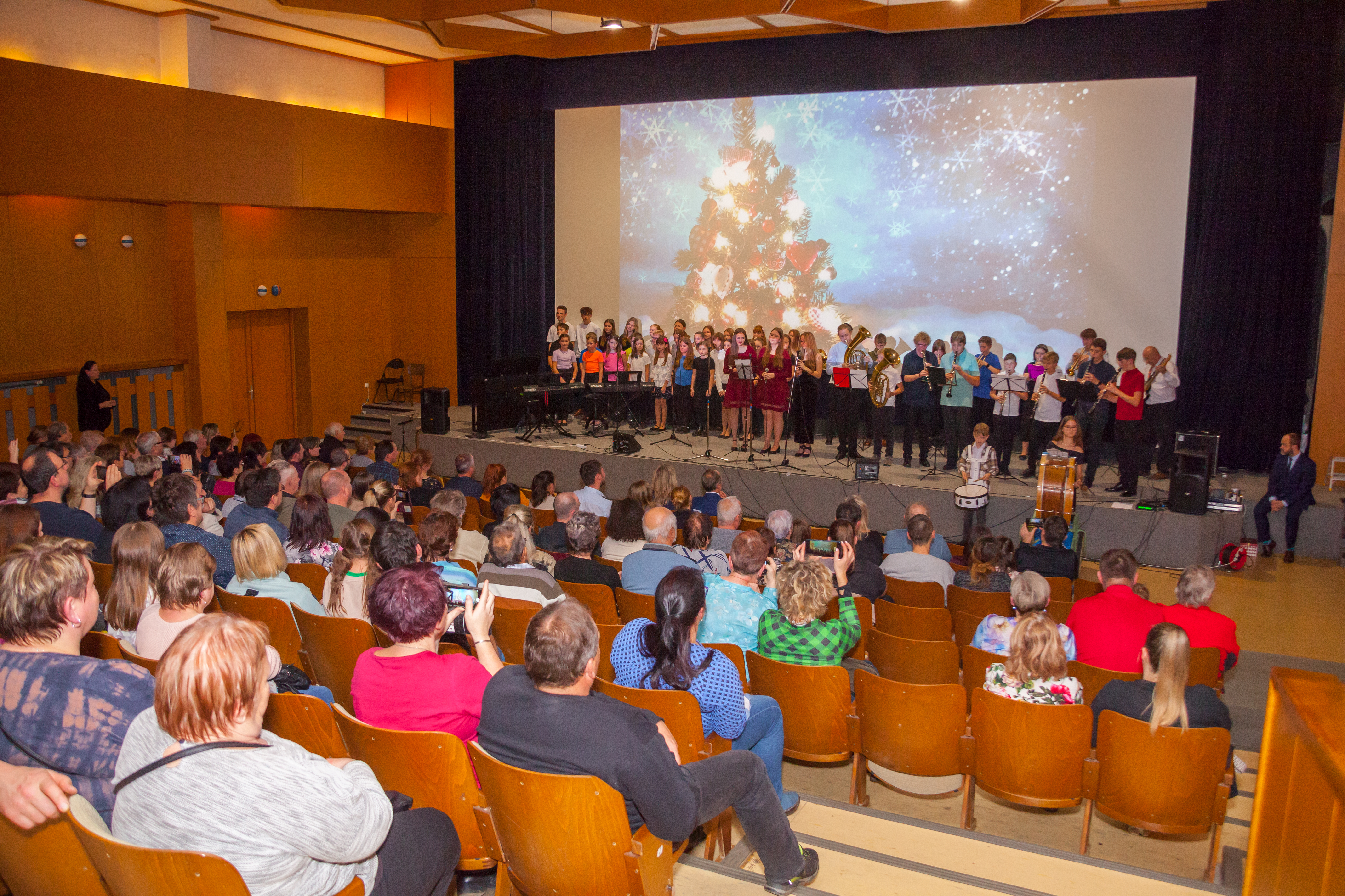 Ve dnech 9. a 11. prosince se v našem městě uskutečnily tradiční vánoční koncerty, které se nesly v příjemné adventní a sváteční atmosféře. Programem provázeli učitelé Jaroslav Šimánek a Petr Vohoska, kteří zvolili originální a divácky atraktivní formu losování čísel jednotlivých vystoupení. Na pódiu se během obou večerů vystřídalo úctyhodných 148 dětí, jež potěšily publikum pestrým hudebním programem. O příjemné osvěžení se postarala také taneční čísla, která dodala koncertům dynamiku a lehkost. Velký ohlas sklidilo rovněž vystoupení naší dechovky a sboru, které bylo skutečným hudebním vrcholem večera. Další večer pak korunoval svým vystoupením i náš Jazzband. Koncerty tak nabídly nejen krásné melodie, ale především radost ze společného setkání a sdílení vánoční nálady.